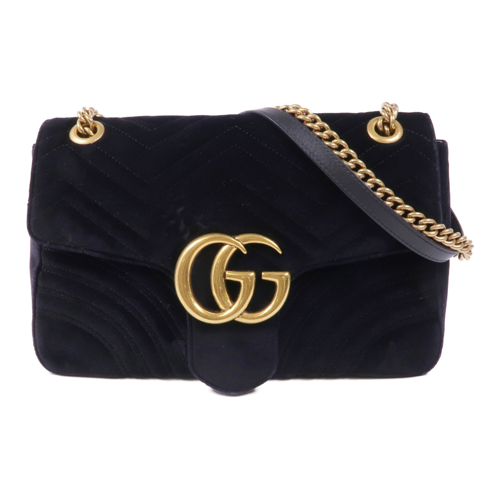 GUCCI 天鵝絨GG Marmont金扣鏈帶肩背袋