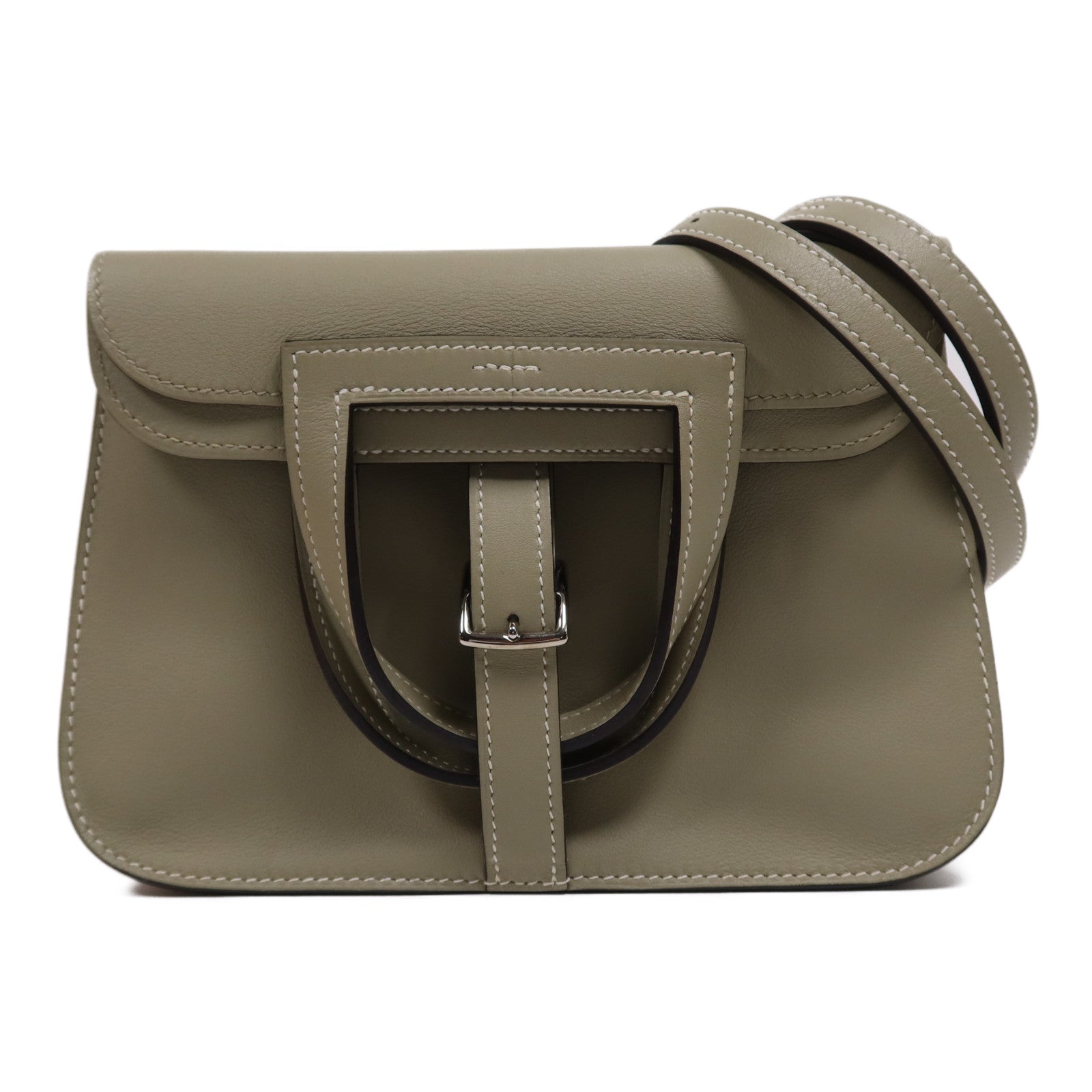 HERMES Swift皮革Mini Halzan銀扣手挽肩背兩用袋Sauge