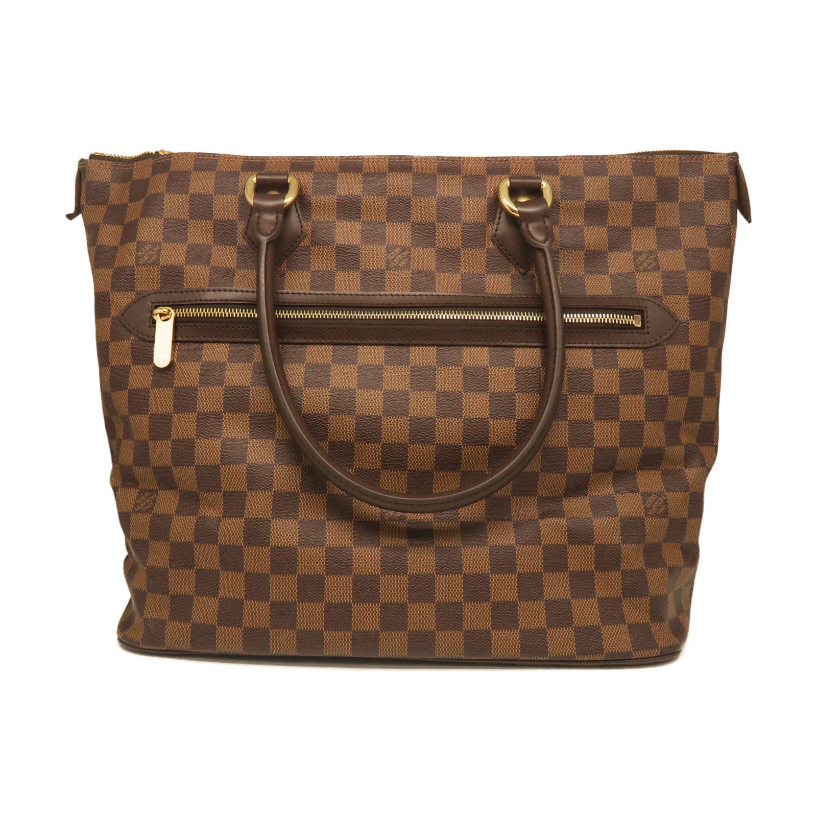 LOUIS VUITTON Damier Saleya GM gold buckle handle bag brown