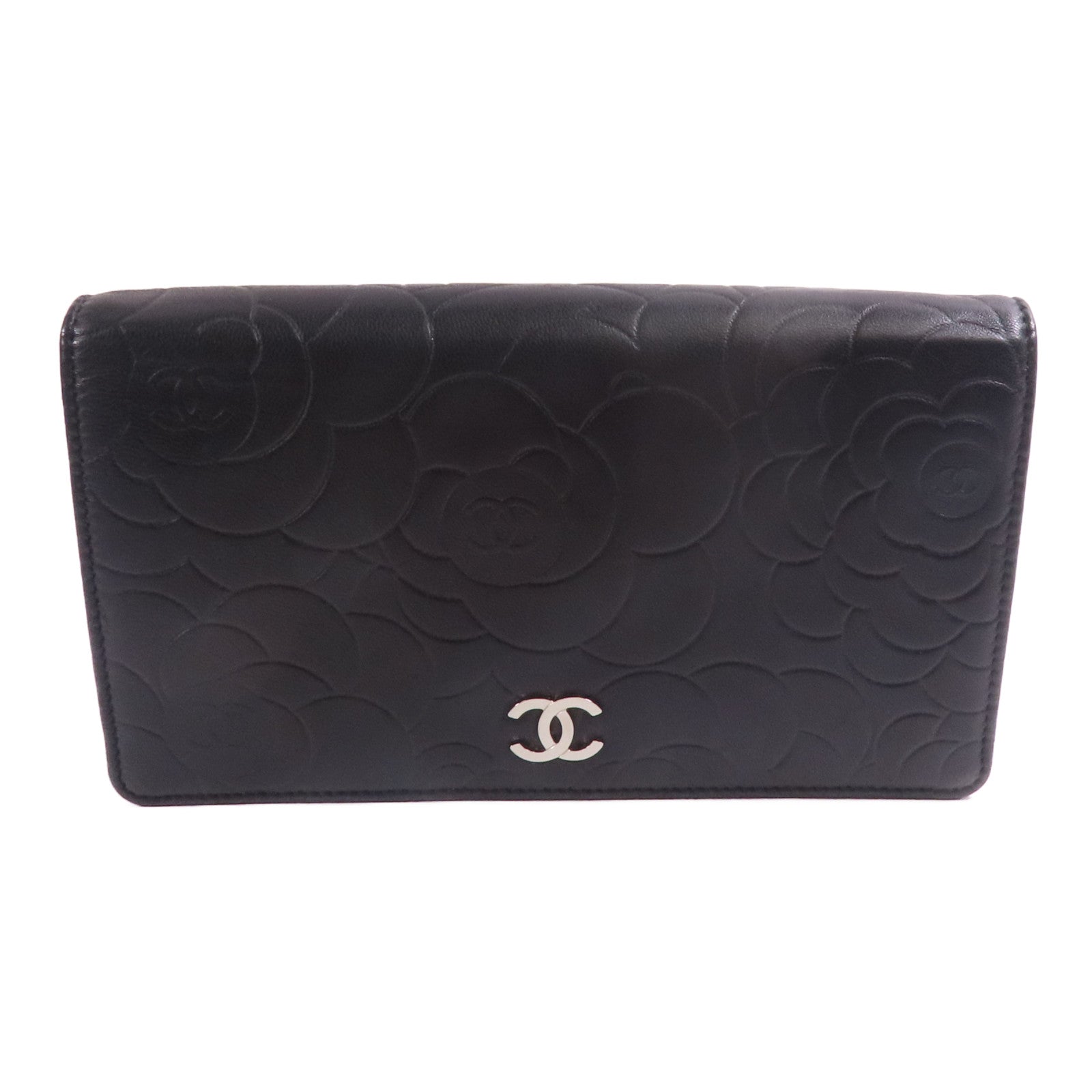 CHANEL 羊皮皮革Long Wallet銀扣錢包