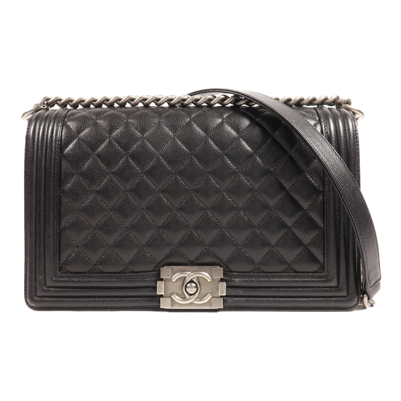 CHANEL 牛皮皮革Boy 28銀扣肩背袋