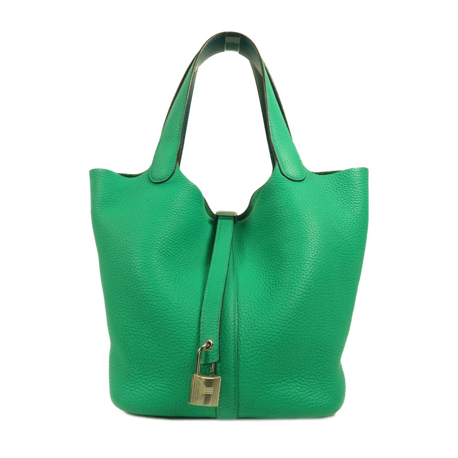 HERMES Clemence皮革Picotin MM銀扣手挽袋Menthe