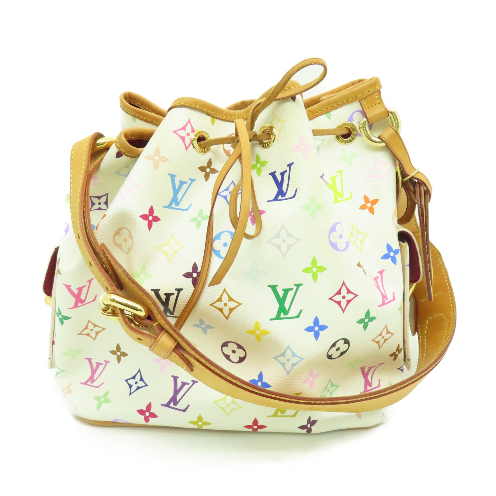 LOUIS VUITTON Monogram Multicolore Petit Noe Gold Buckle Shoulder Bag White