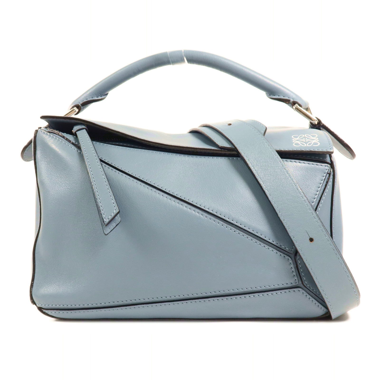 LOEWE 牛皮皮革Puzzle Small銀扣手挽肩背兩用袋