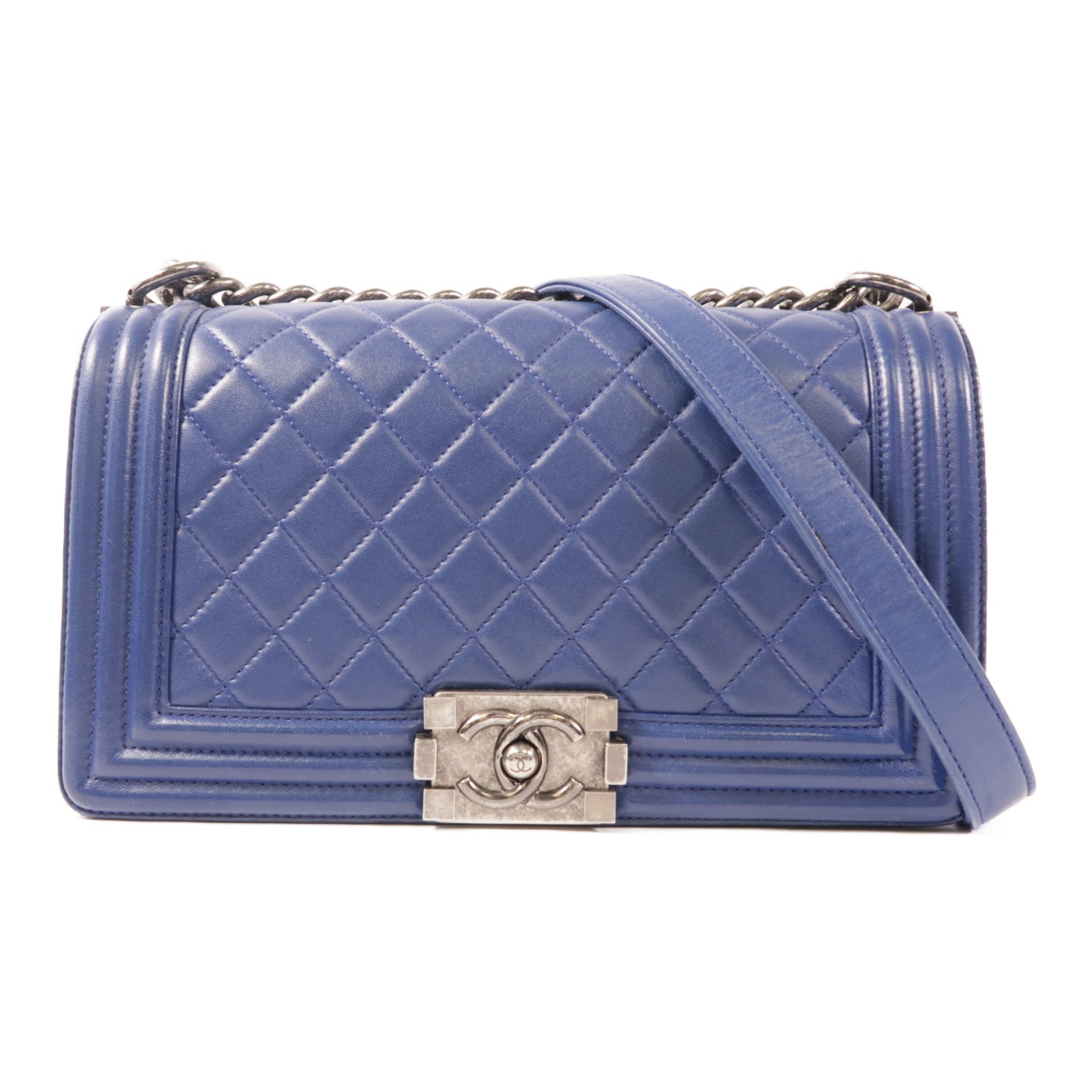 CHANEL (PRICE DOWN) CC Boy 25cm Shoulder Bag #23232297 Lambskin Leather Navy