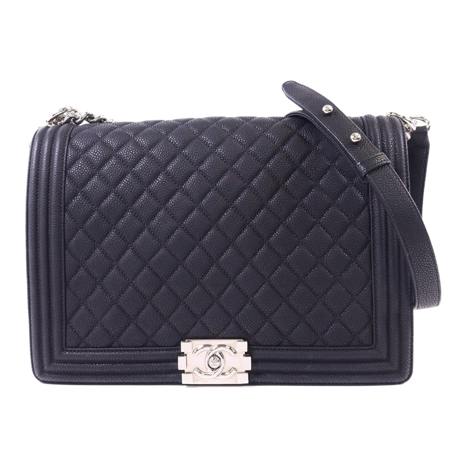 CHANEL 牛皮皮革Boy 30銀扣鏈帶肩背袋