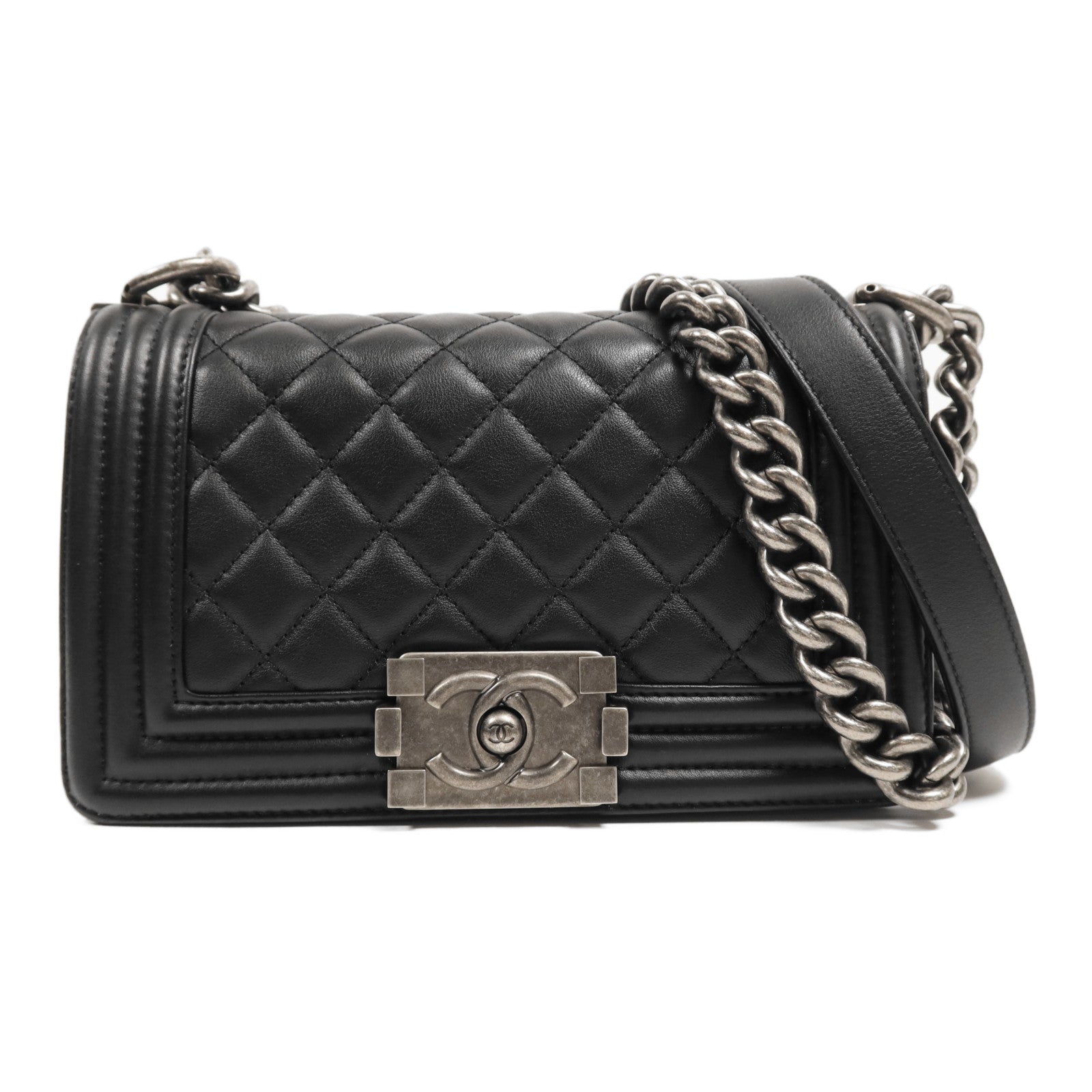 CHANEL 羊皮皮革Boy 20銀扣鏈帶肩背袋