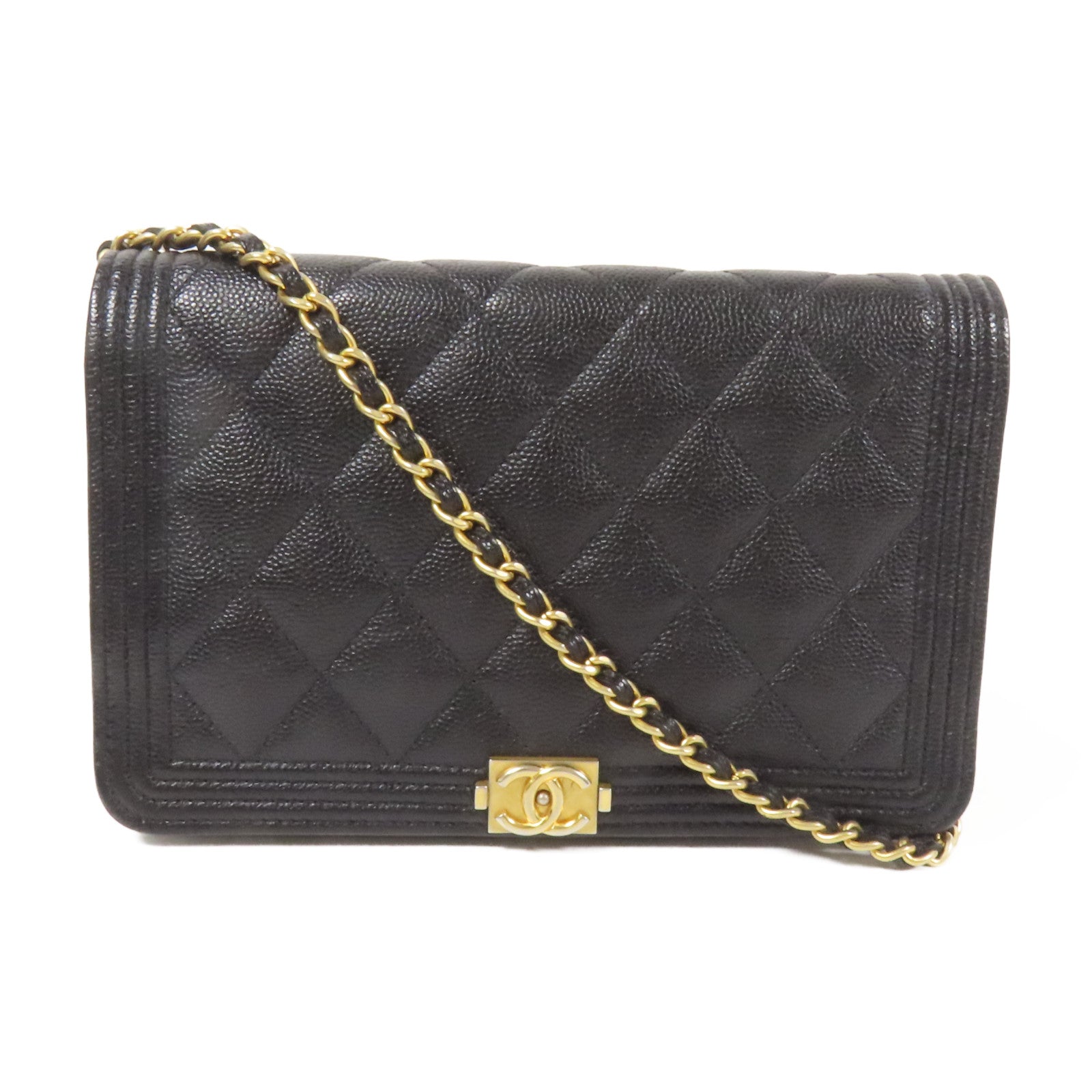 CHANEL 牛皮皮革Boy WOC金扣鏈帶肩背袋