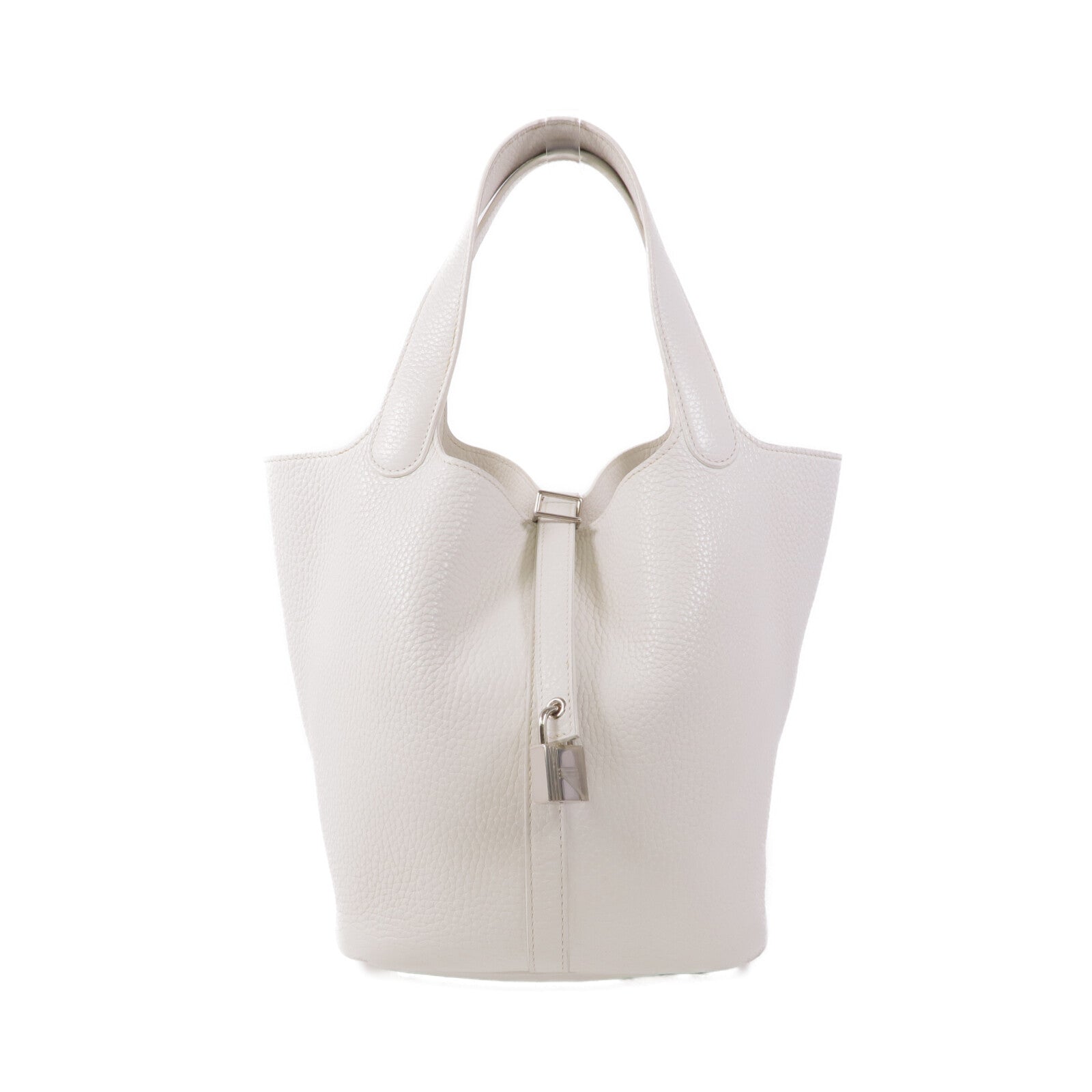 HERMES Clemence皮革Picotin MM銀扣手挽袋Blanc