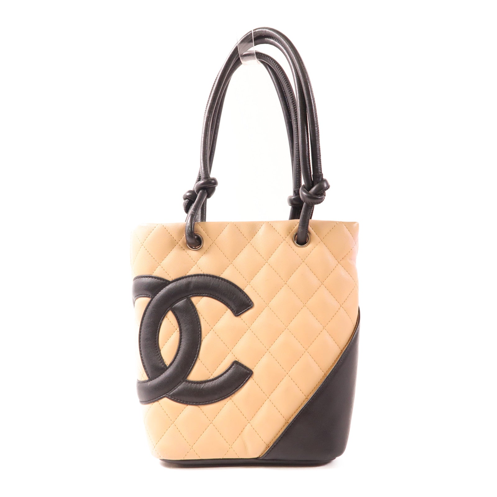 CHANEL CC SHW Cambon Tote Bag Calfskin Leather Pink Black