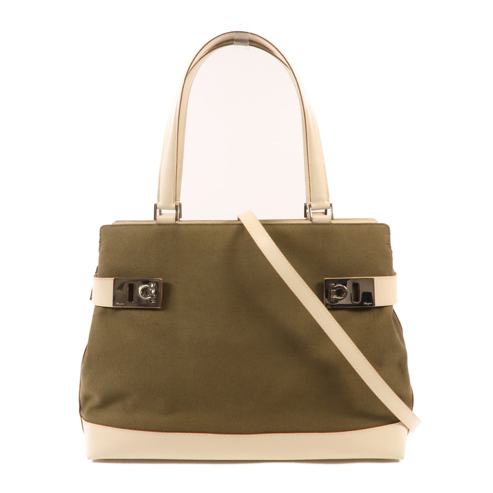 Salvatore Ferragamo 帆布/皮革2 Way Shoulder銀扣手挽肩背兩用袋