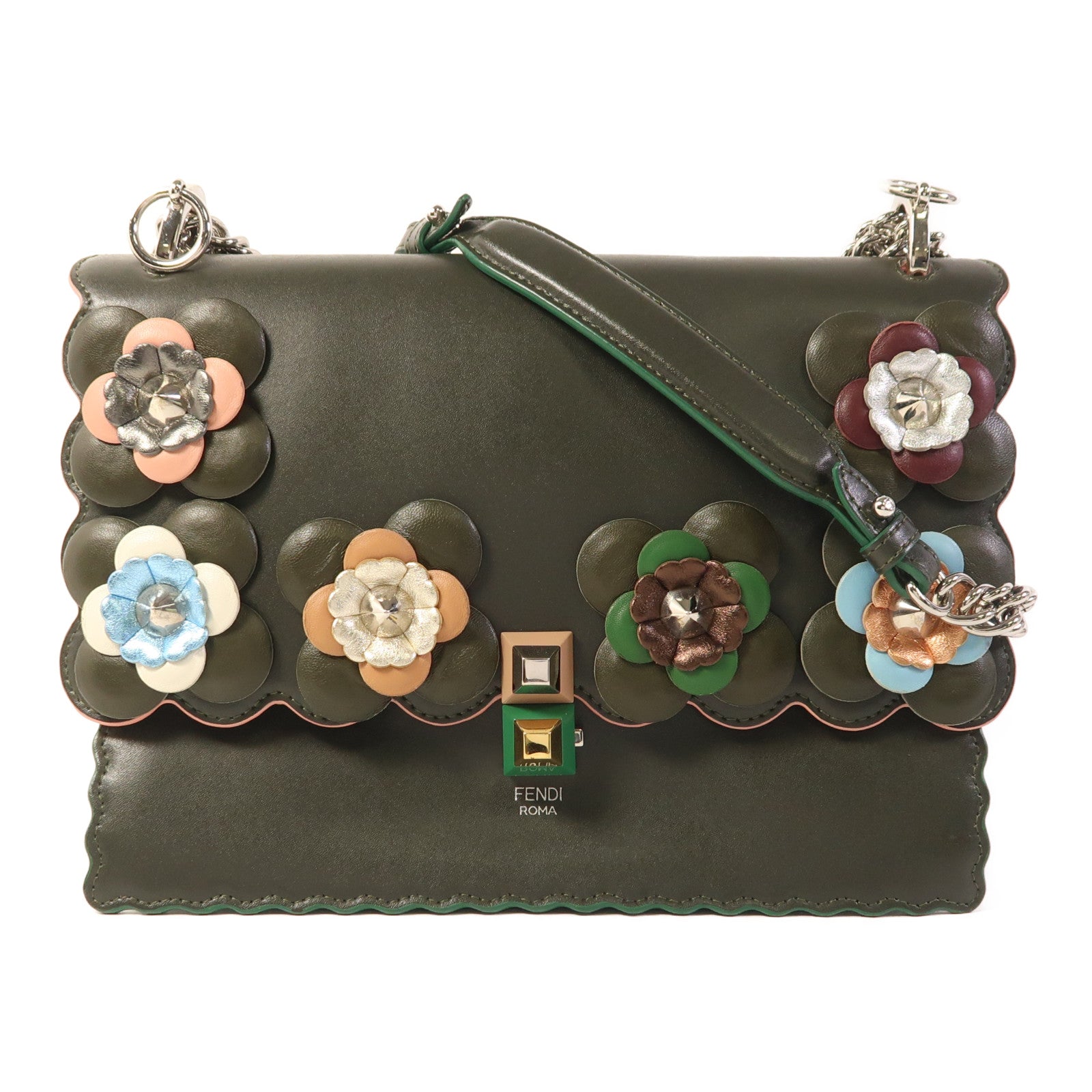 FENDI 牛皮皮革Flowerland Kan I銀扣鏈帶肩背袋