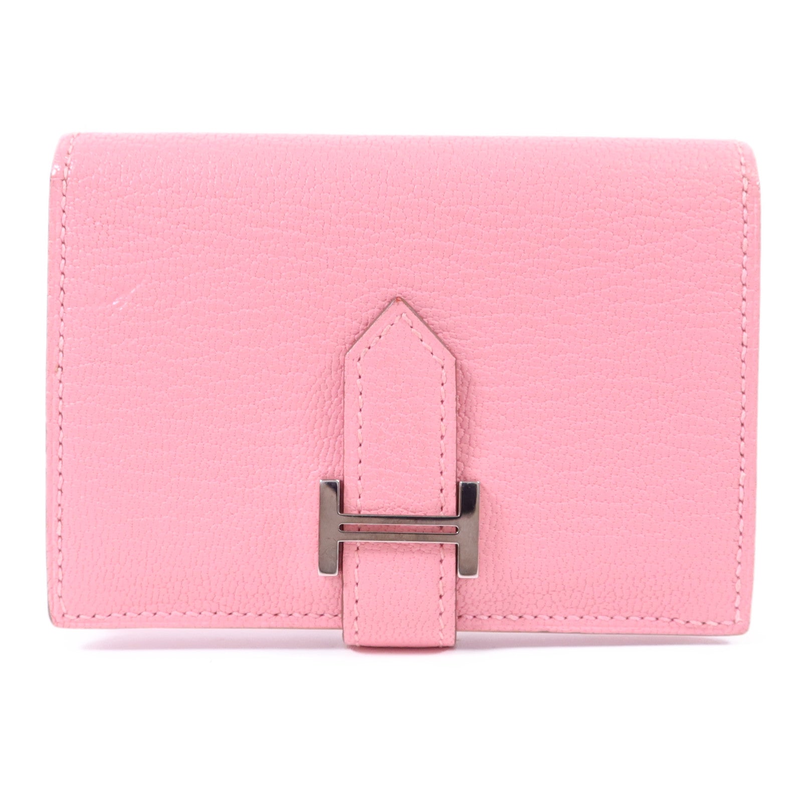 HERMES Chevre皮革Bearn卡片套Rose Lipstick