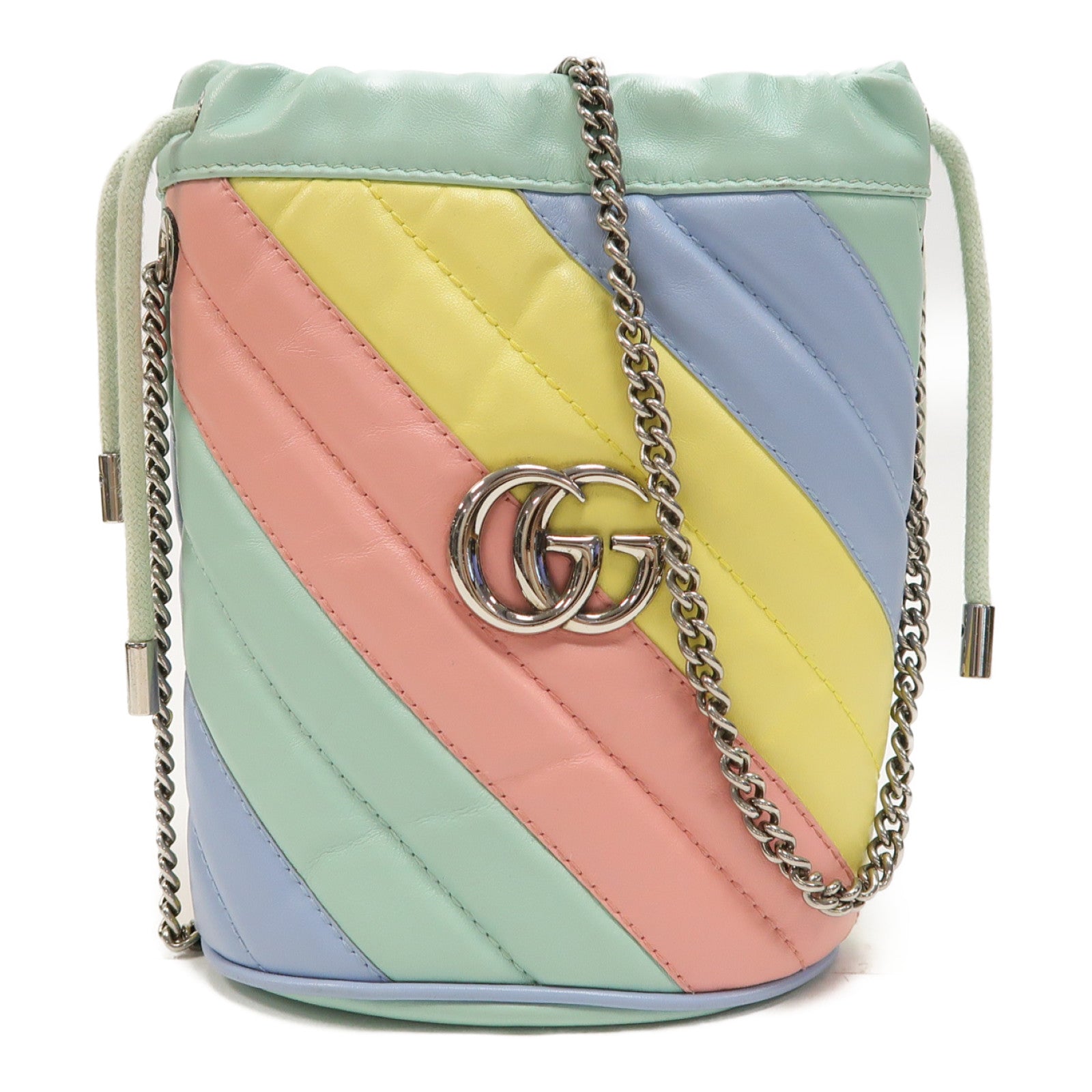 GUCCI 【激減優惠】牛皮皮革GG Marmont Mini Bucket Bag銀扣鏈帶肩背袋彩色