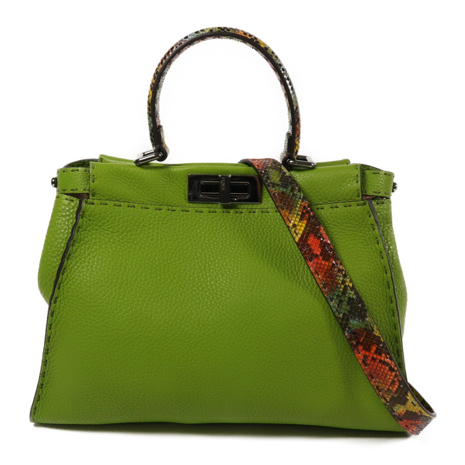 FENDI 牛皮/蛇皮革Peekaboo銀扣手挽肩背兩用袋