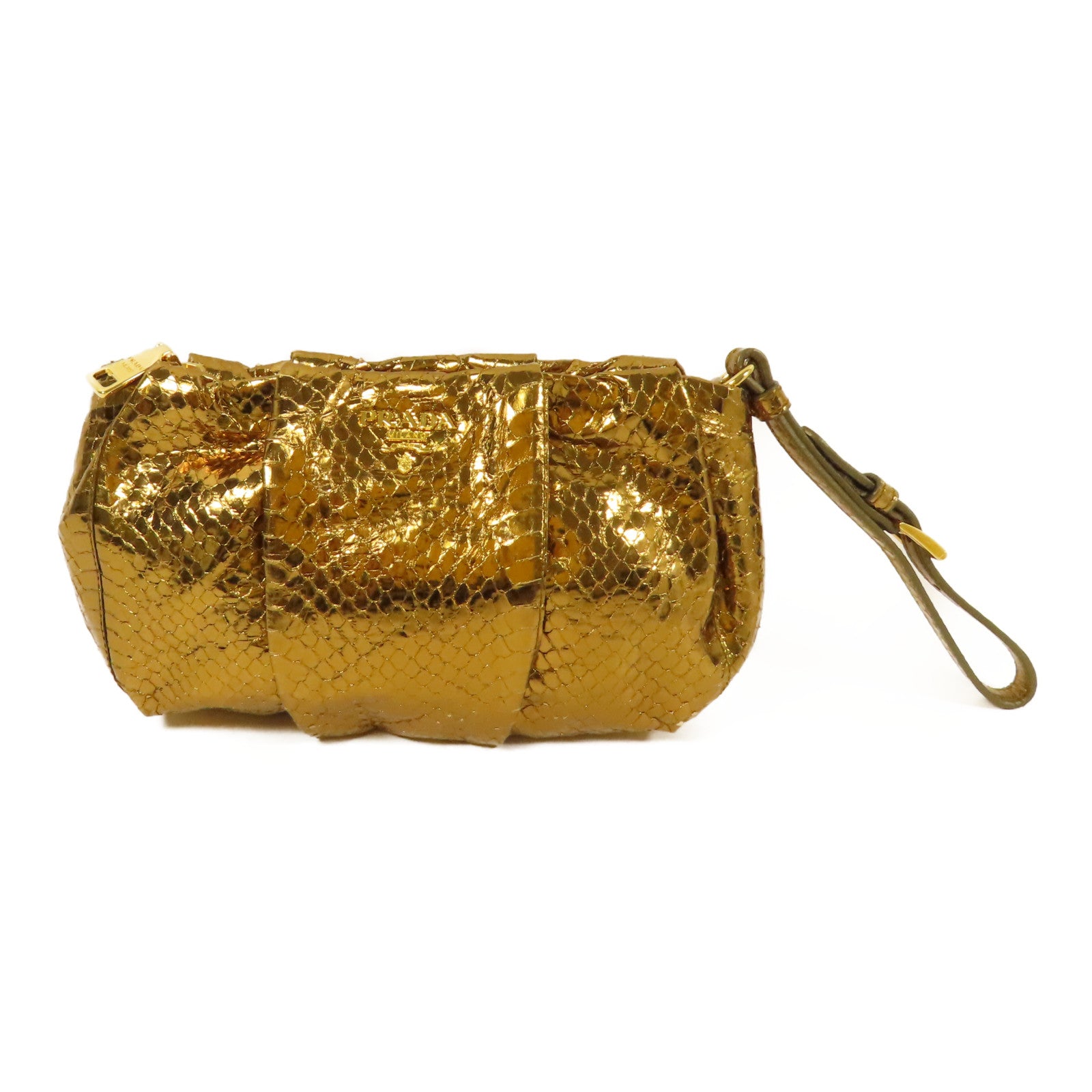 PRADA 【激減優惠】蛇皮皮革Pouch金扣手拿包
