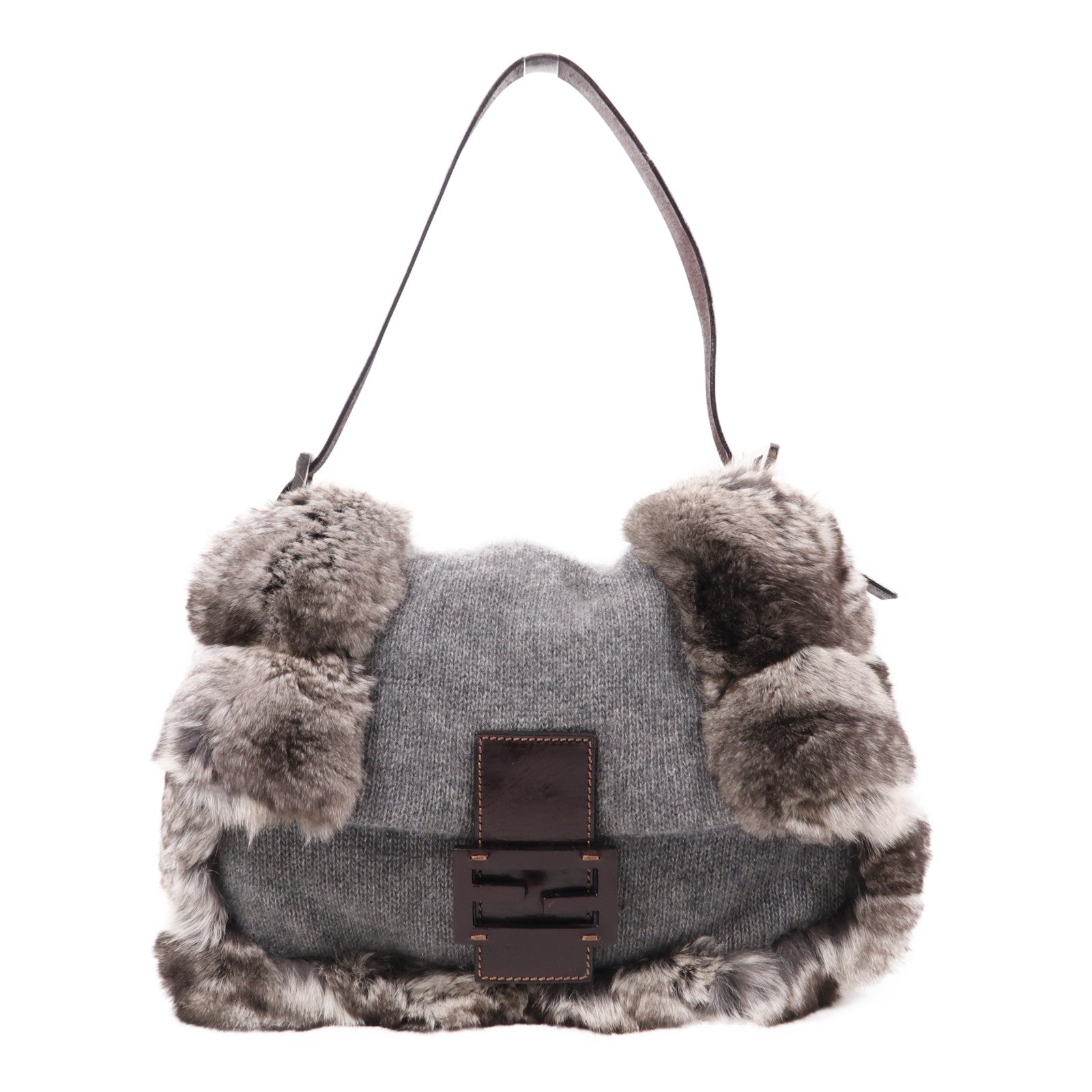 FENDI 羊毛/兔毛Baguette銀扣肩背袋