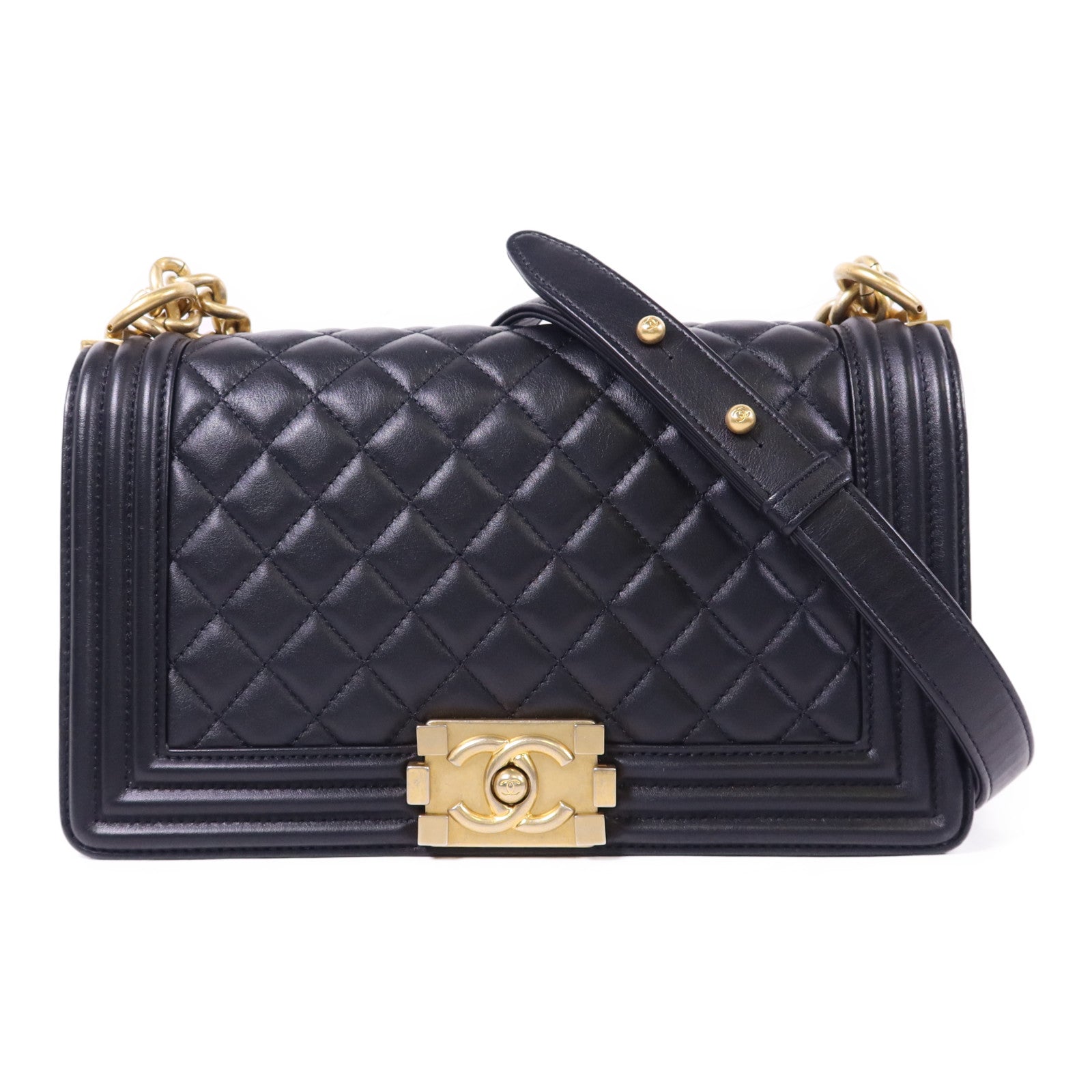 CHANEL 羊皮皮革Boy 25金扣鏈帶肩背袋