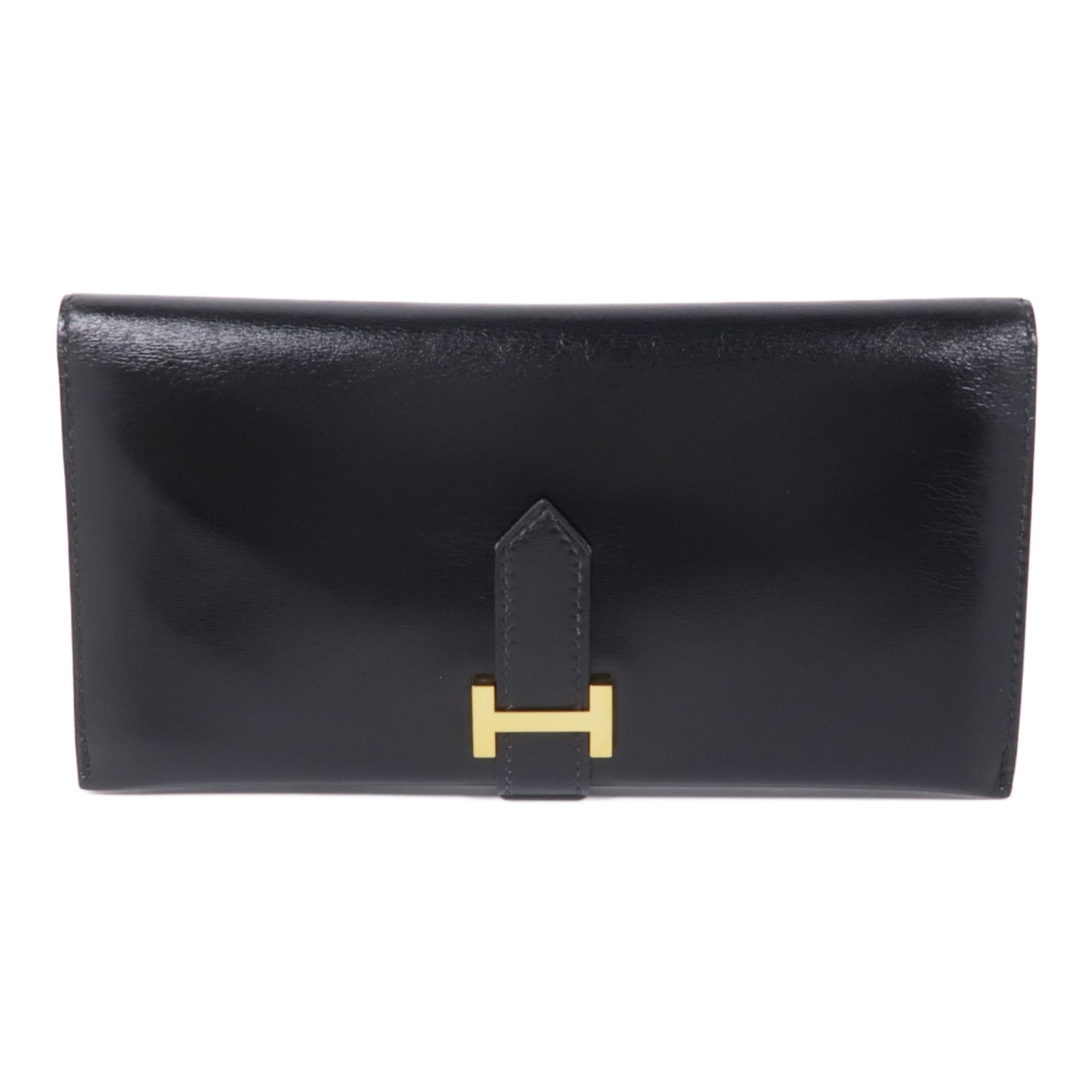 HERMES Box Calf皮革Bean Wallet金扣長錢包Noir
