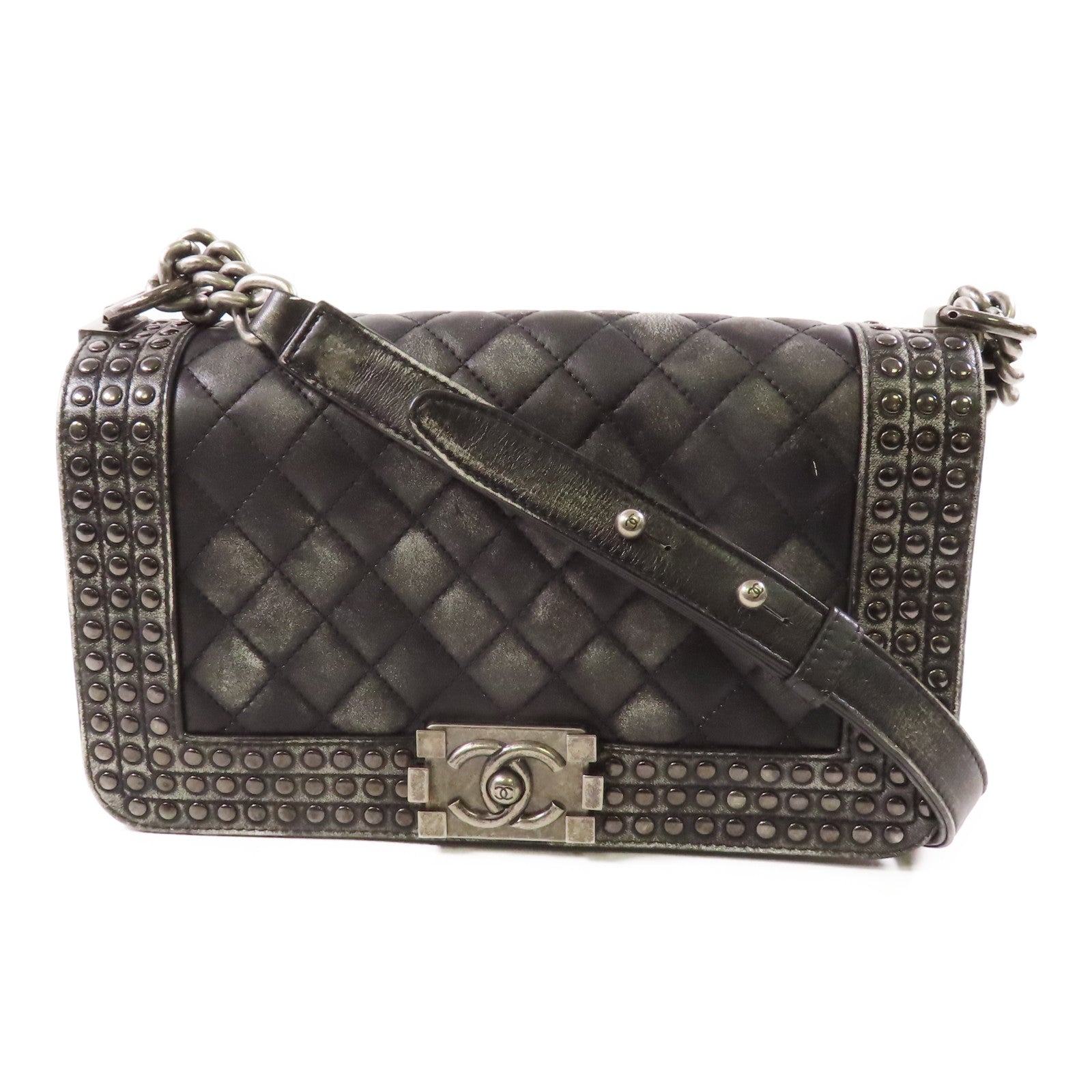 CHANEL 【激減優惠】牛皮皮革Boy 25銀扣鏈帶肩背袋