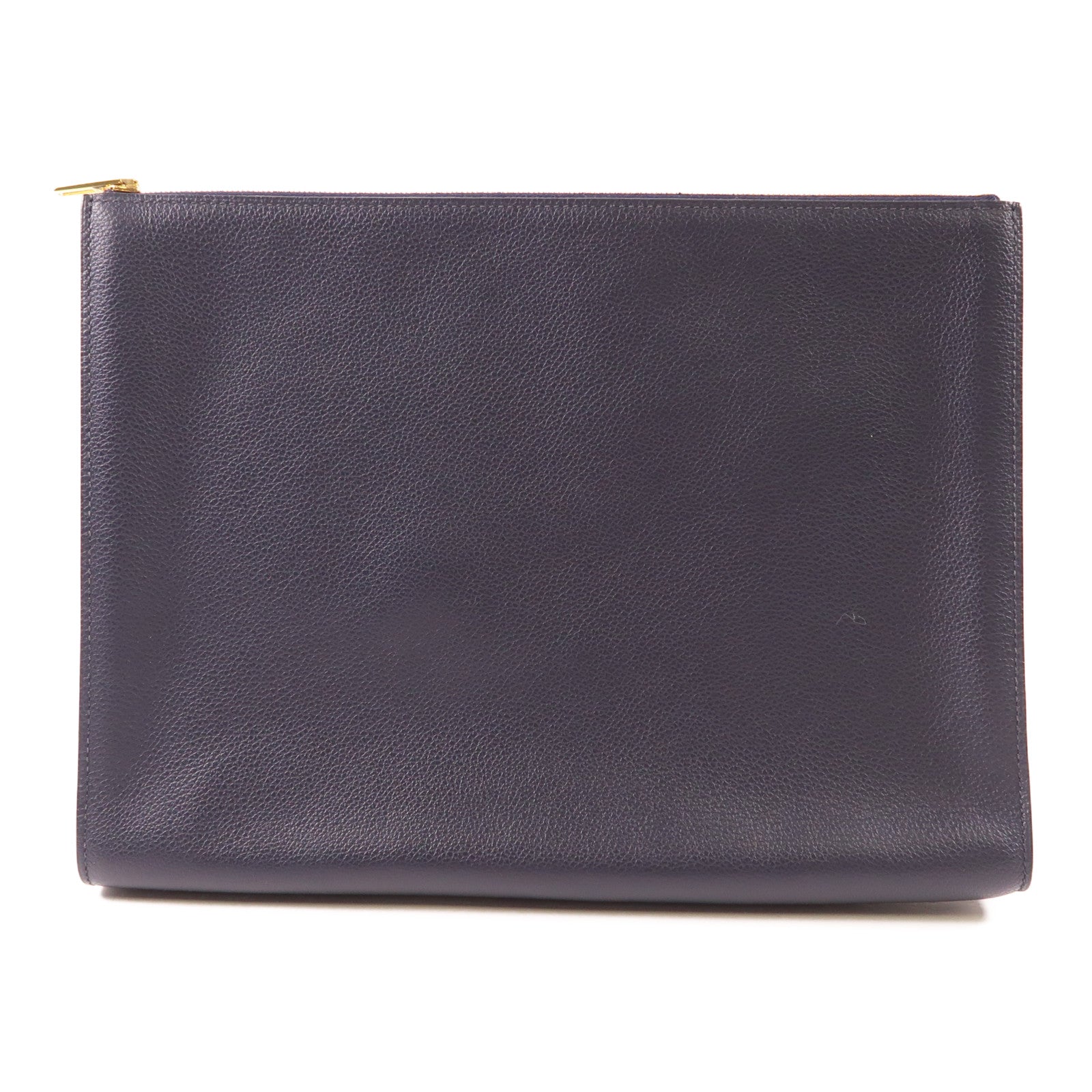 HERMES Evercolor皮革Zipengo GM金扣手拿包Bleu Nuit