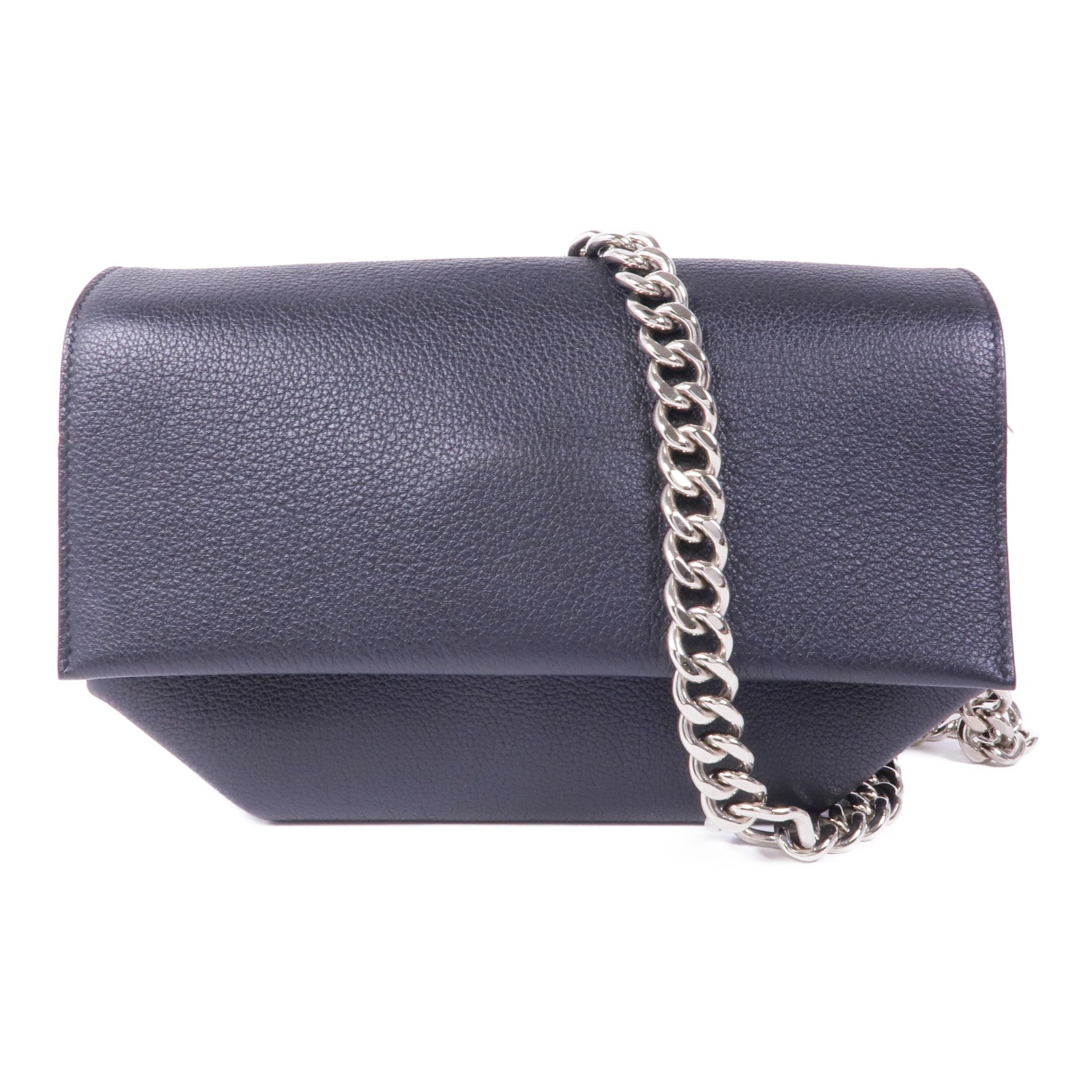 HERMES Clemence皮革Opli 24銀扣鏈帶肩背袋Noir