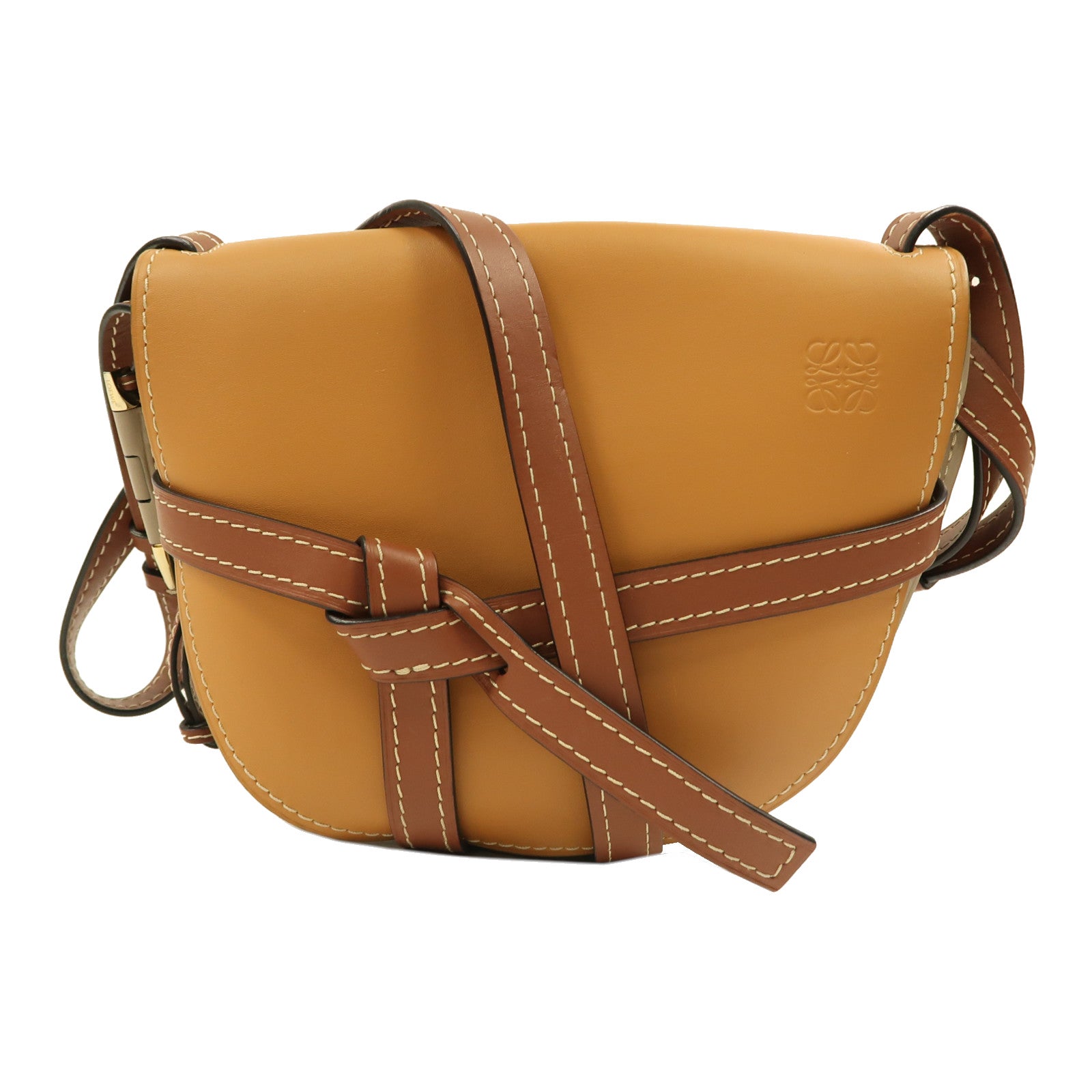 LOEWE 牛皮皮革Gate Small金扣肩背袋米色/啡色