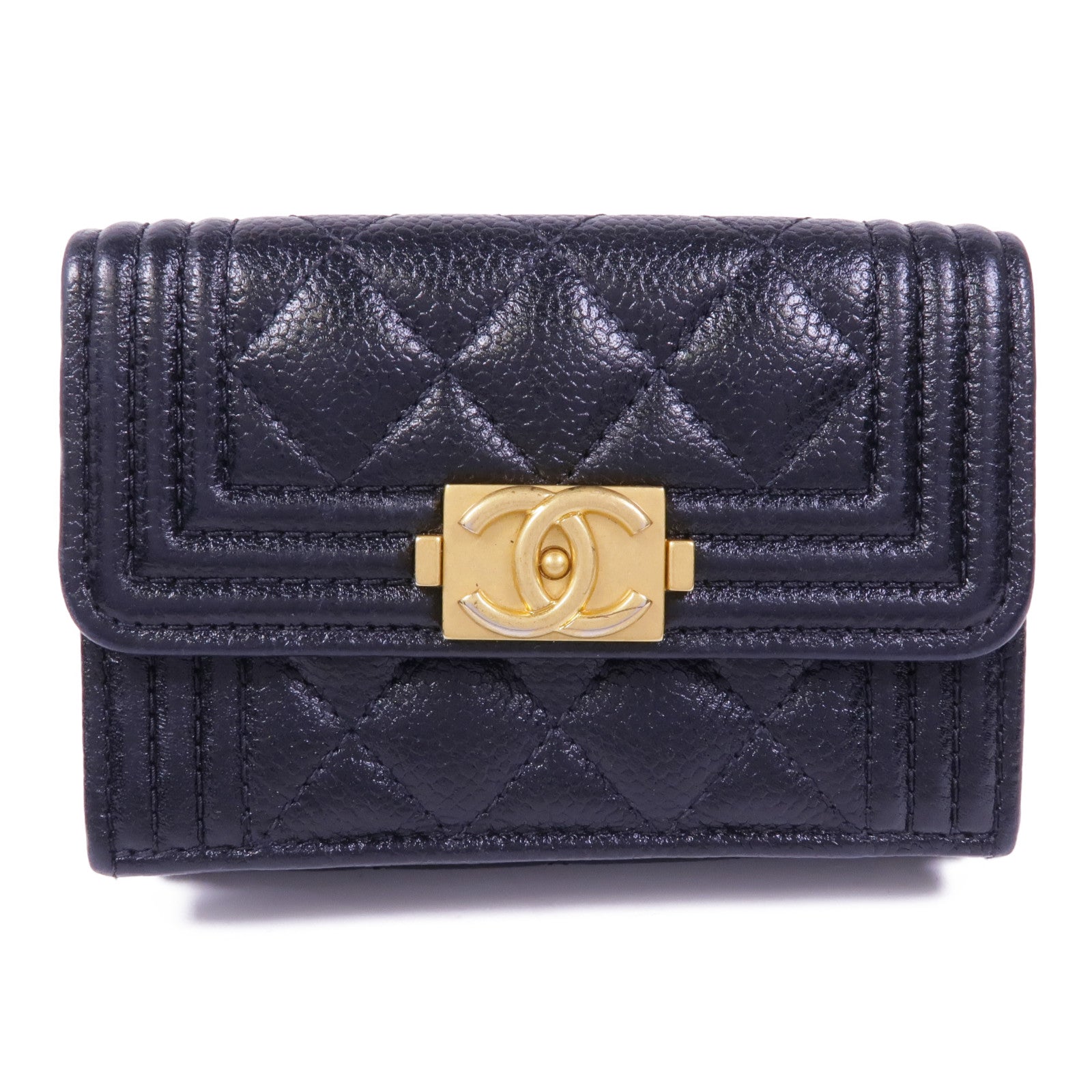 CHANEL 牛皮皮革Boy Wallet金扣錢包