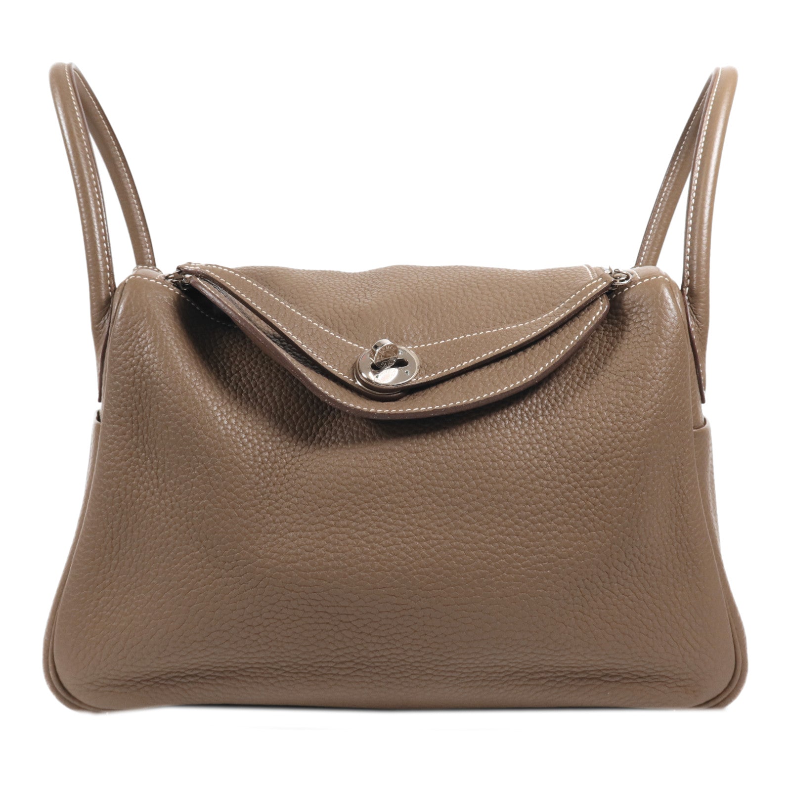 HERMES Togo皮革Lindy 30銀扣手挽肩背兩用袋Etoupe
