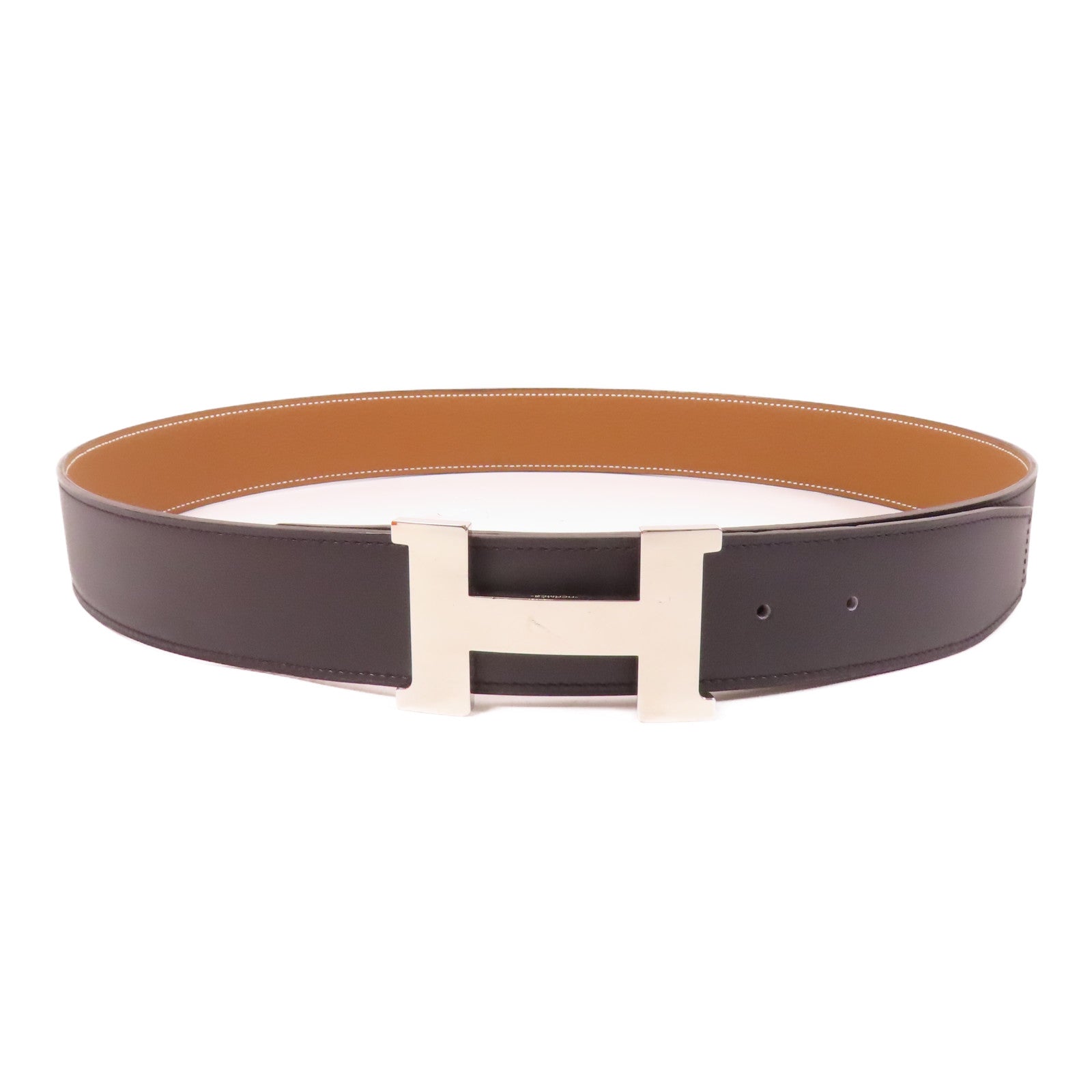 HERMES Clemence皮革H Belt 100cm銀扣皮帶Noir Gold