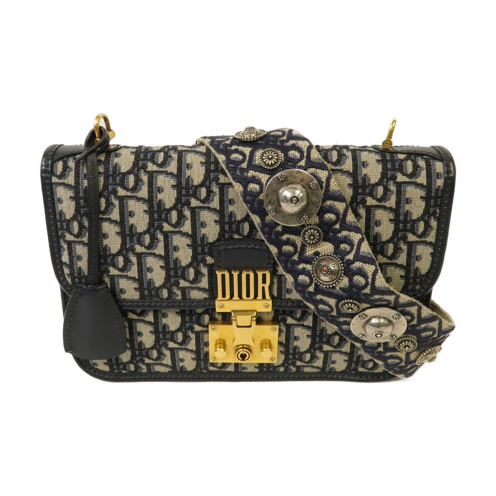 Dior 帆布Dioraddict Flap金扣肩背袋深藍色
