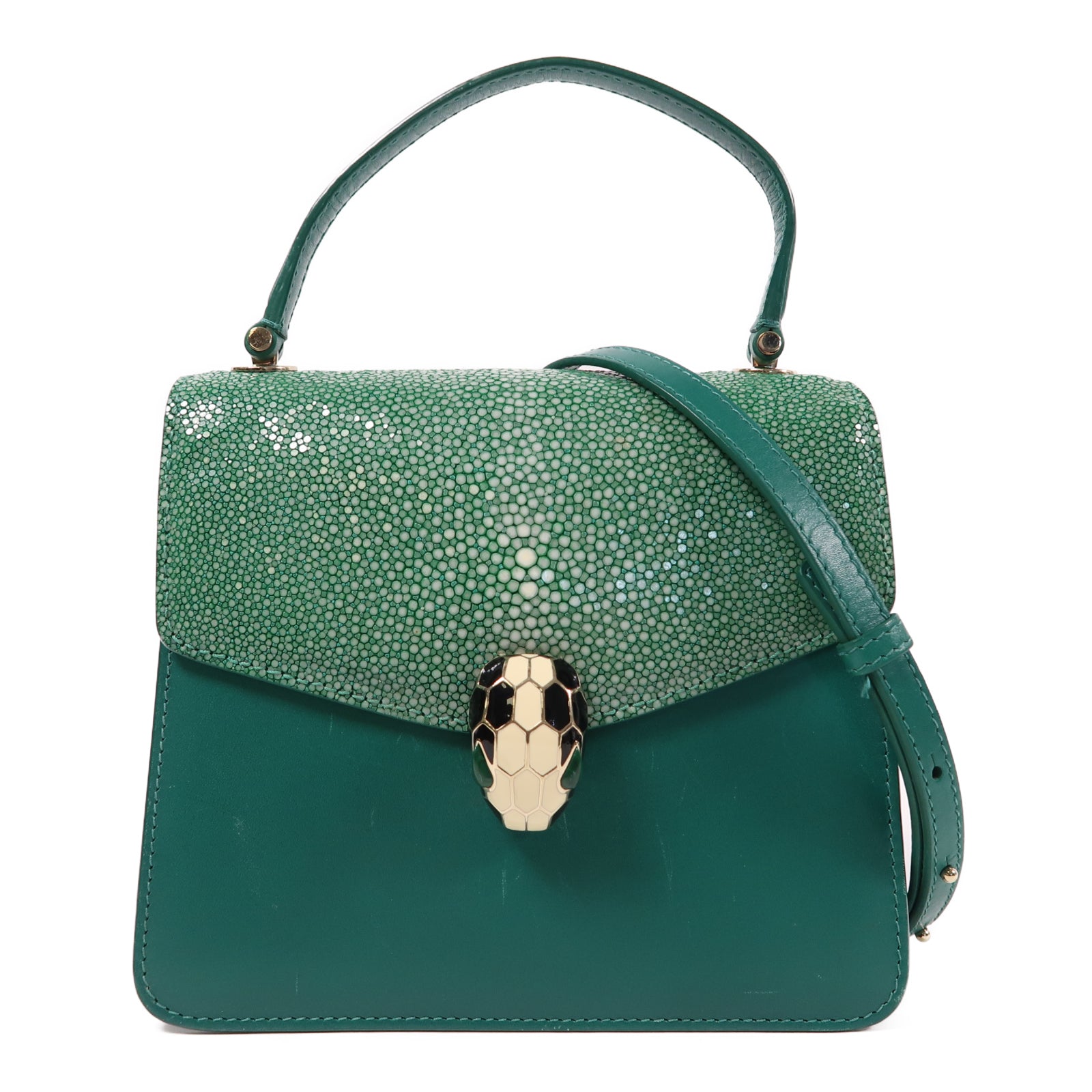 BVLGARI 【激減優惠】牛皮皮革/魔鬼魚皮革Serpenti Forever金扣手挽肩背兩用袋綠色