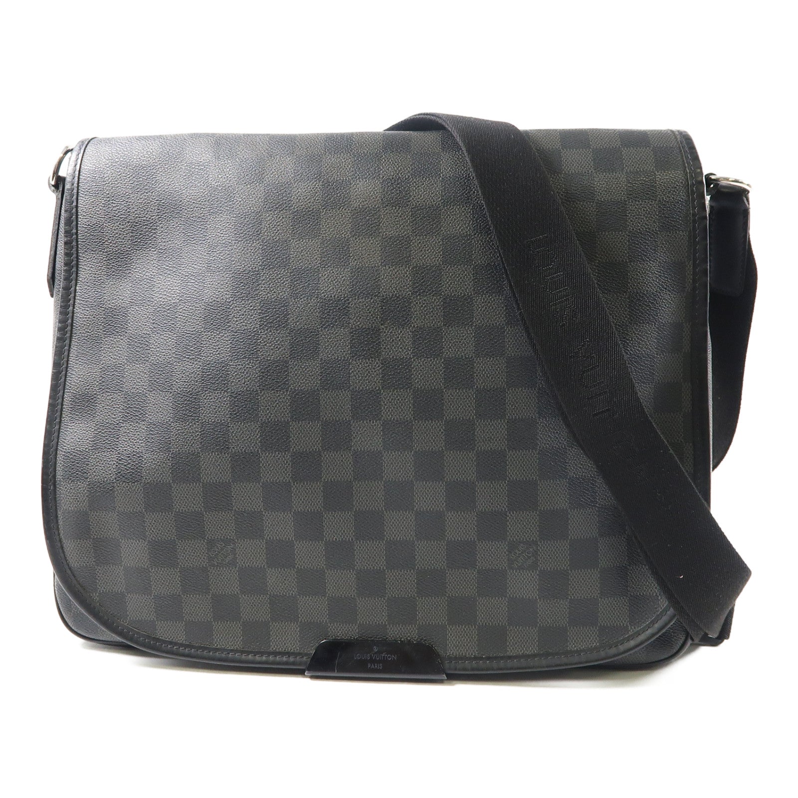 LOUIS VUITTON 【激減優惠】Damier Graphite Daniel MM銀扣肩背袋黑色/灰色