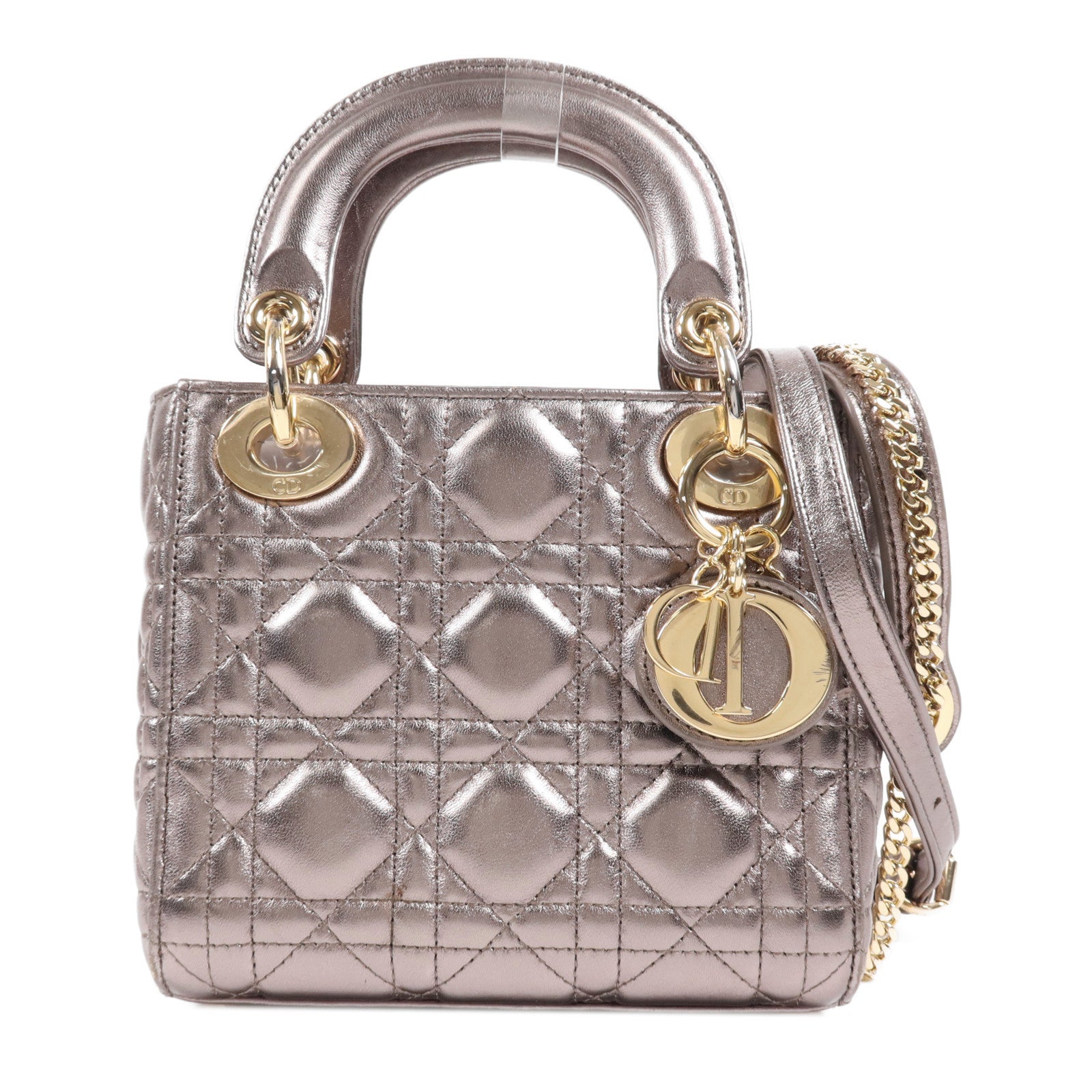 Dior 羊皮皮革Lady Dior Mini金扣手挽肩背兩用袋
