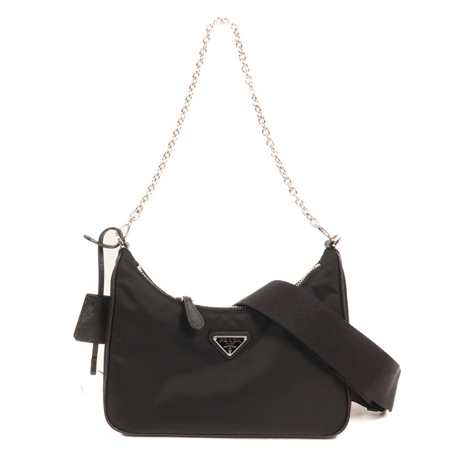 PRADA 尼龍Re-Edition 2005銀扣鏈帶肩背袋