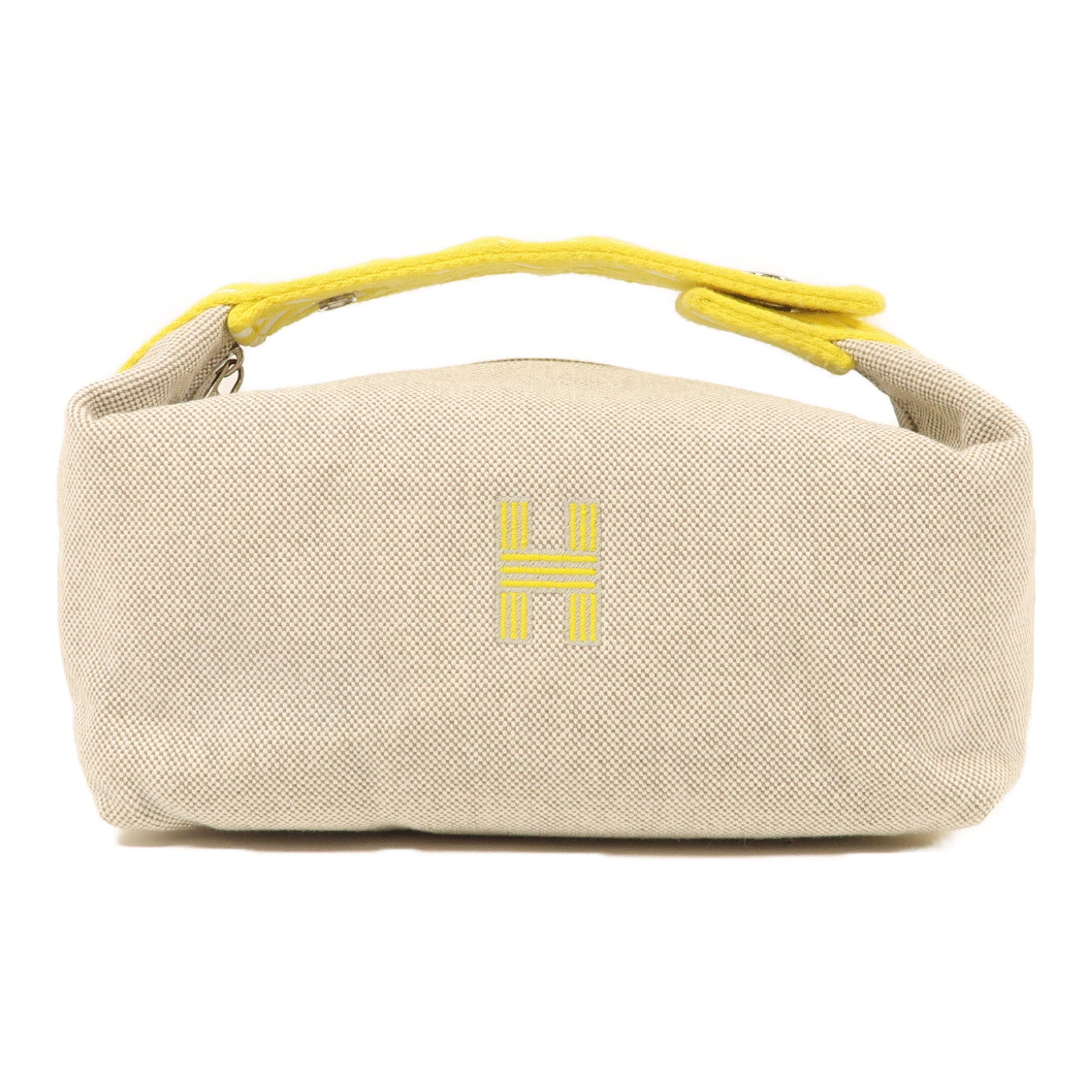 HERMES 帆布Bride A Brac銀扣手挽袋黃色