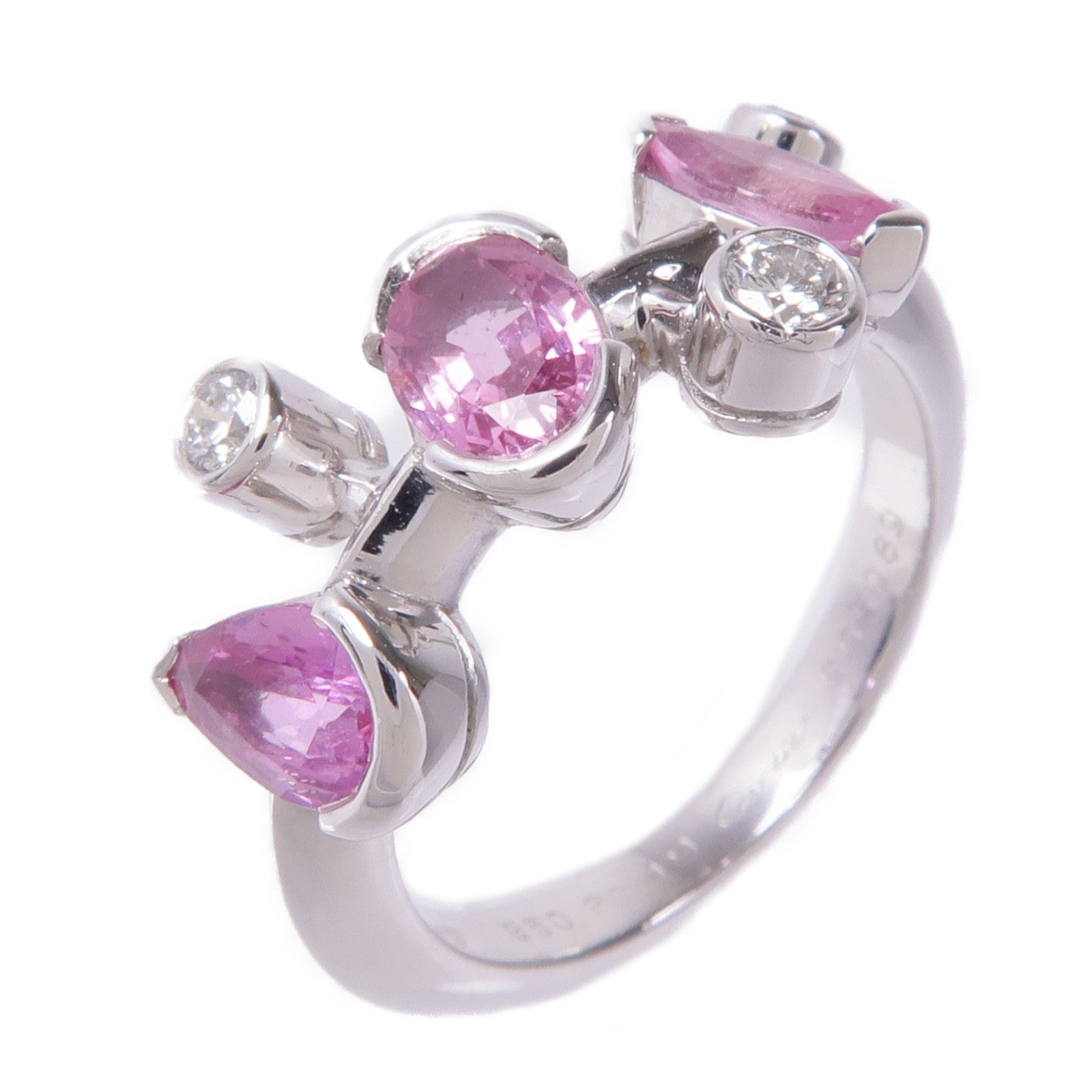 CARTIER 【激減優惠】PT950鉑金Merimero Ring粉紅色藍寶石/鑽石戒指Cartier#49/US#5