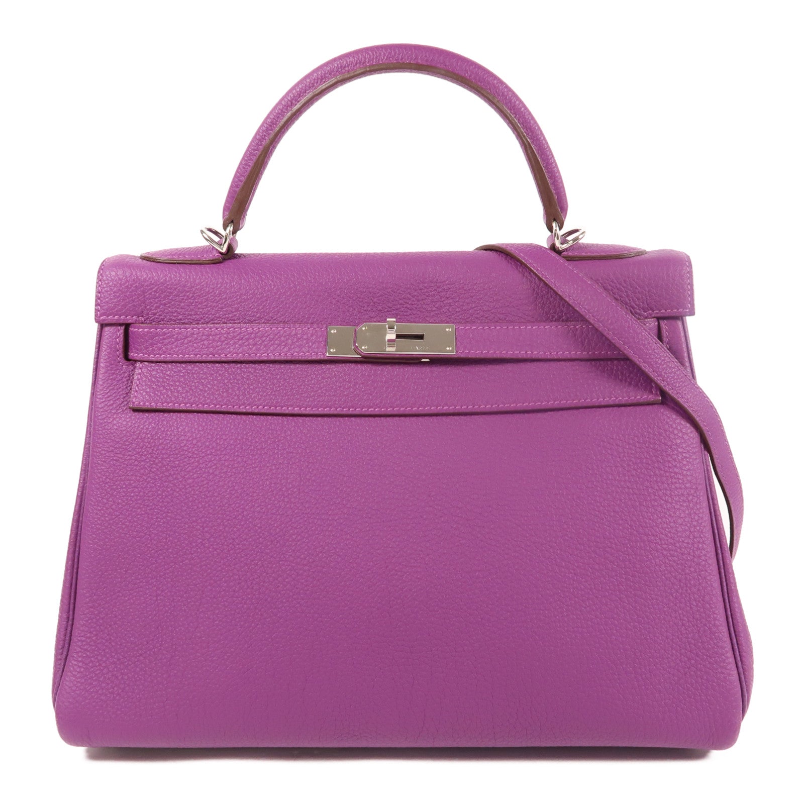HERMES 【激減優惠】Togo皮革Kelly 32銀扣手挽肩背兩用袋Anemone