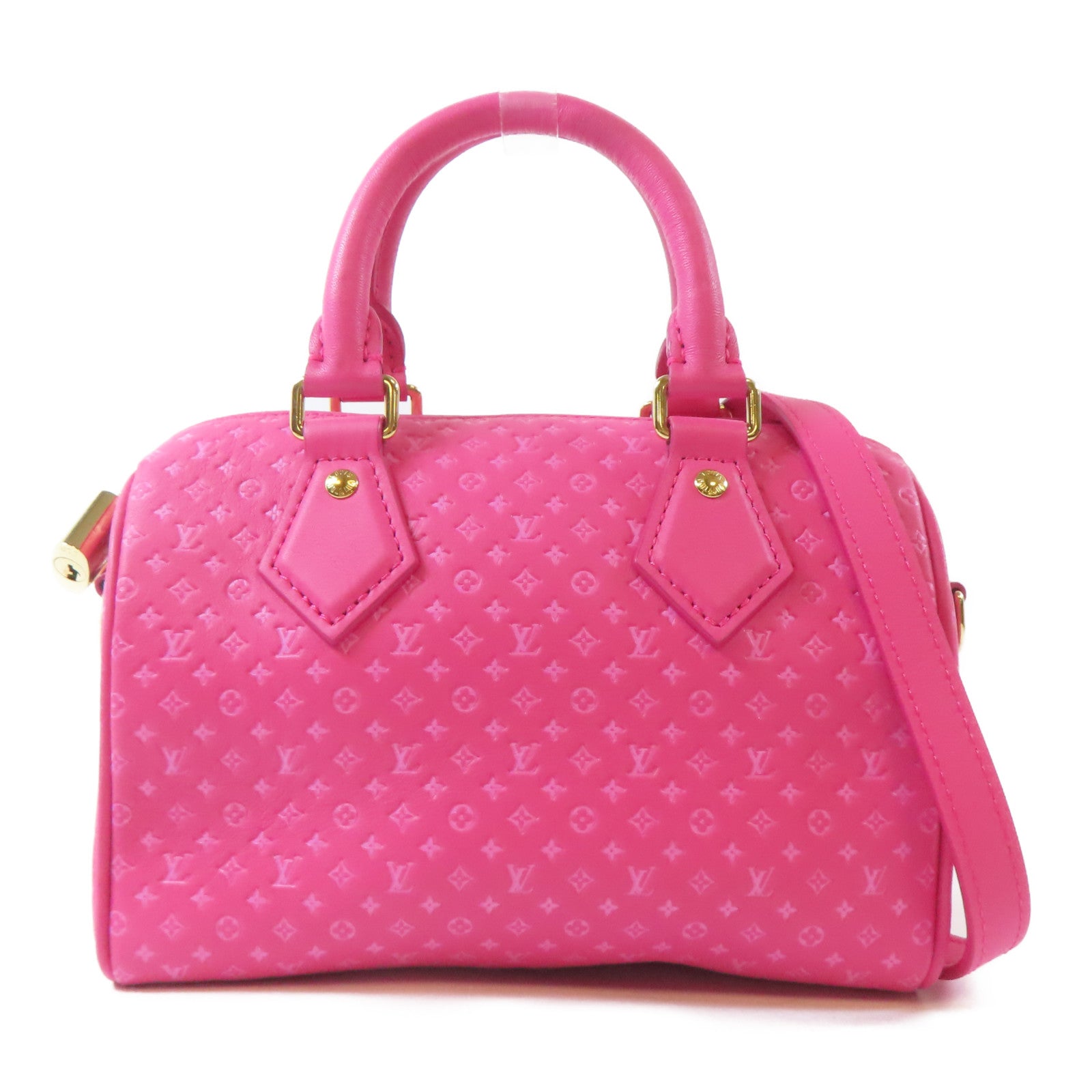 LOUIS VUITTON 牛皮皮革Speedy Bandouliere 20金扣手挽肩背兩用袋粉紅色