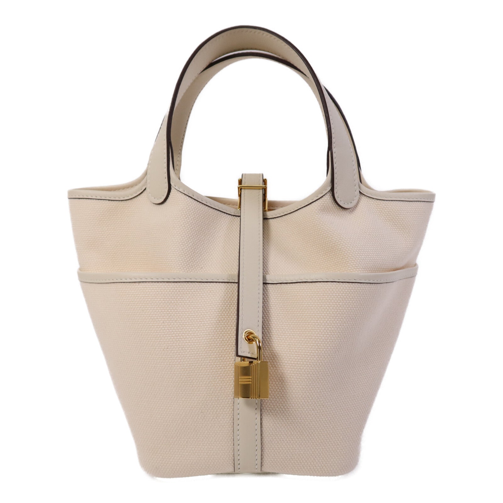 HERMES Swift皮革/帆布Picotin PM金扣手挽袋