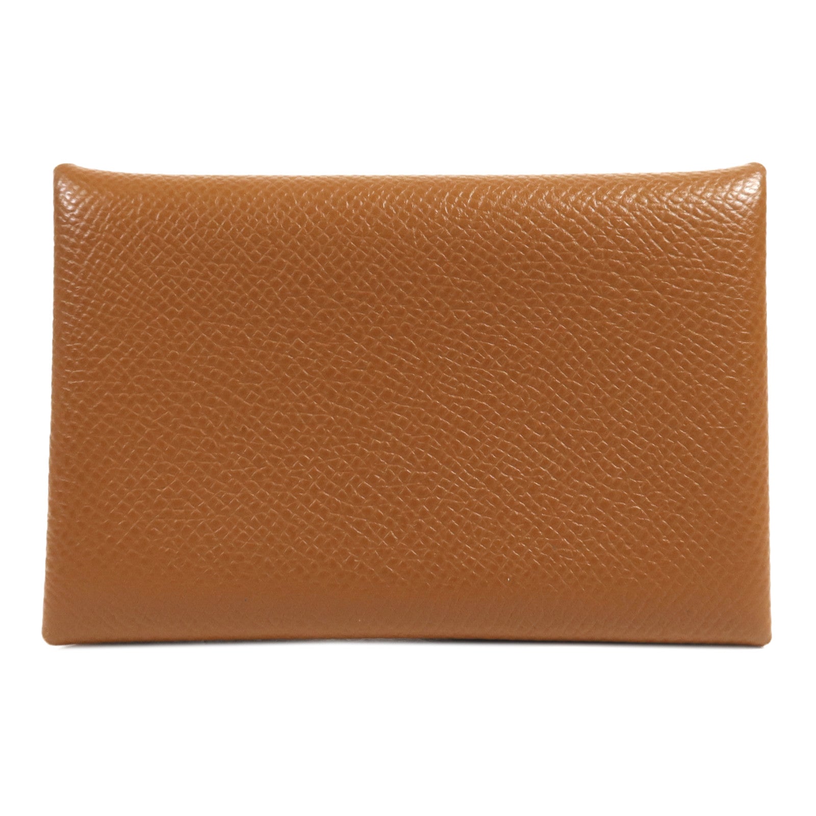 HERMES Epsom皮革Calvi銀扣卡片套Gold