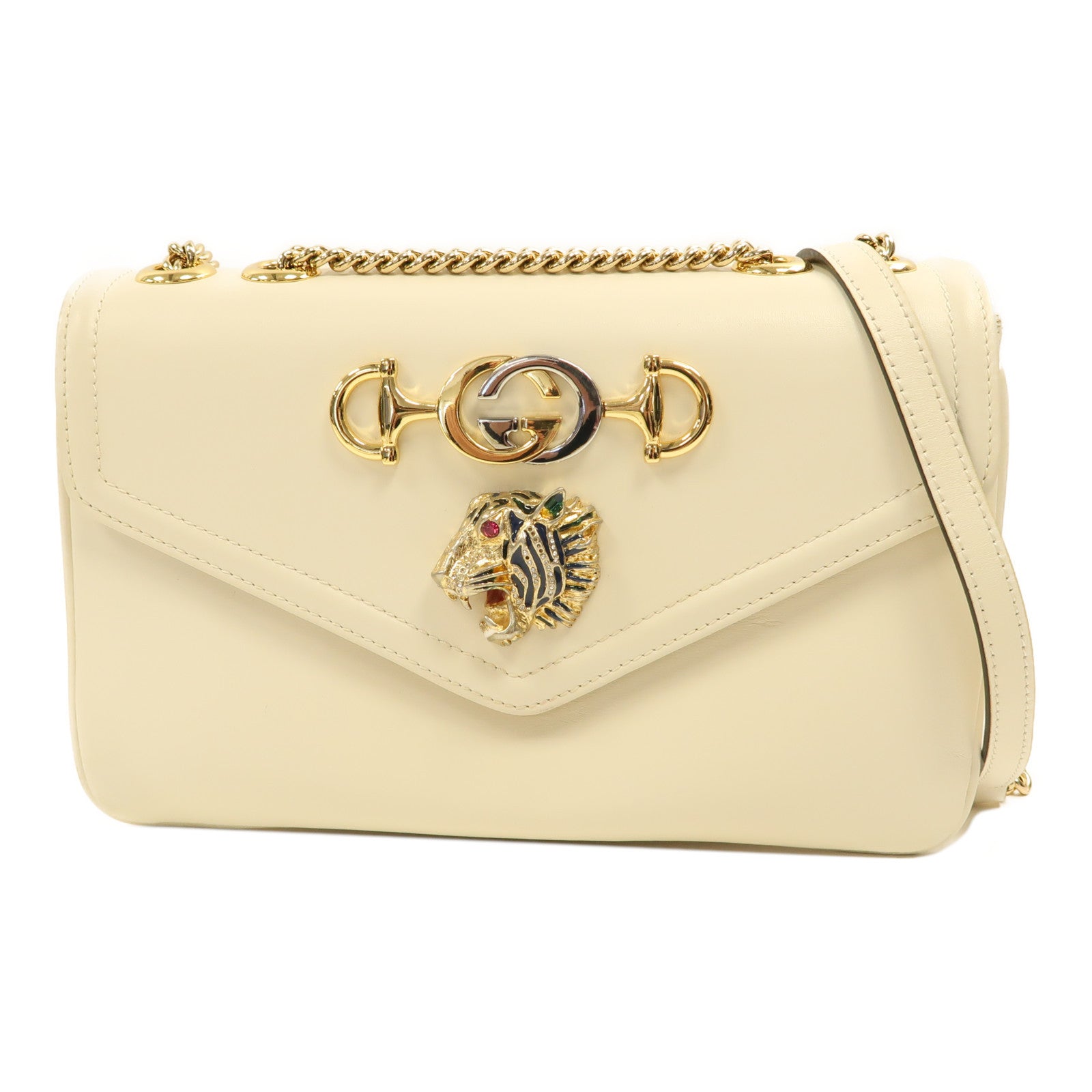 GUCCI 【激減優惠】牛皮皮革Rajah Medium金扣鏈帶肩背袋白色