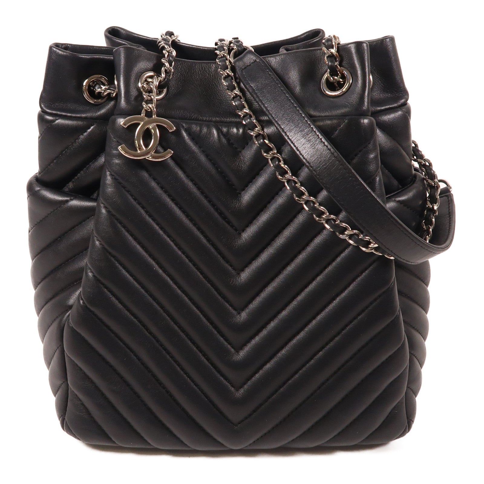 CHANEL 牛皮皮革Bucket金扣鏈帶肩背袋