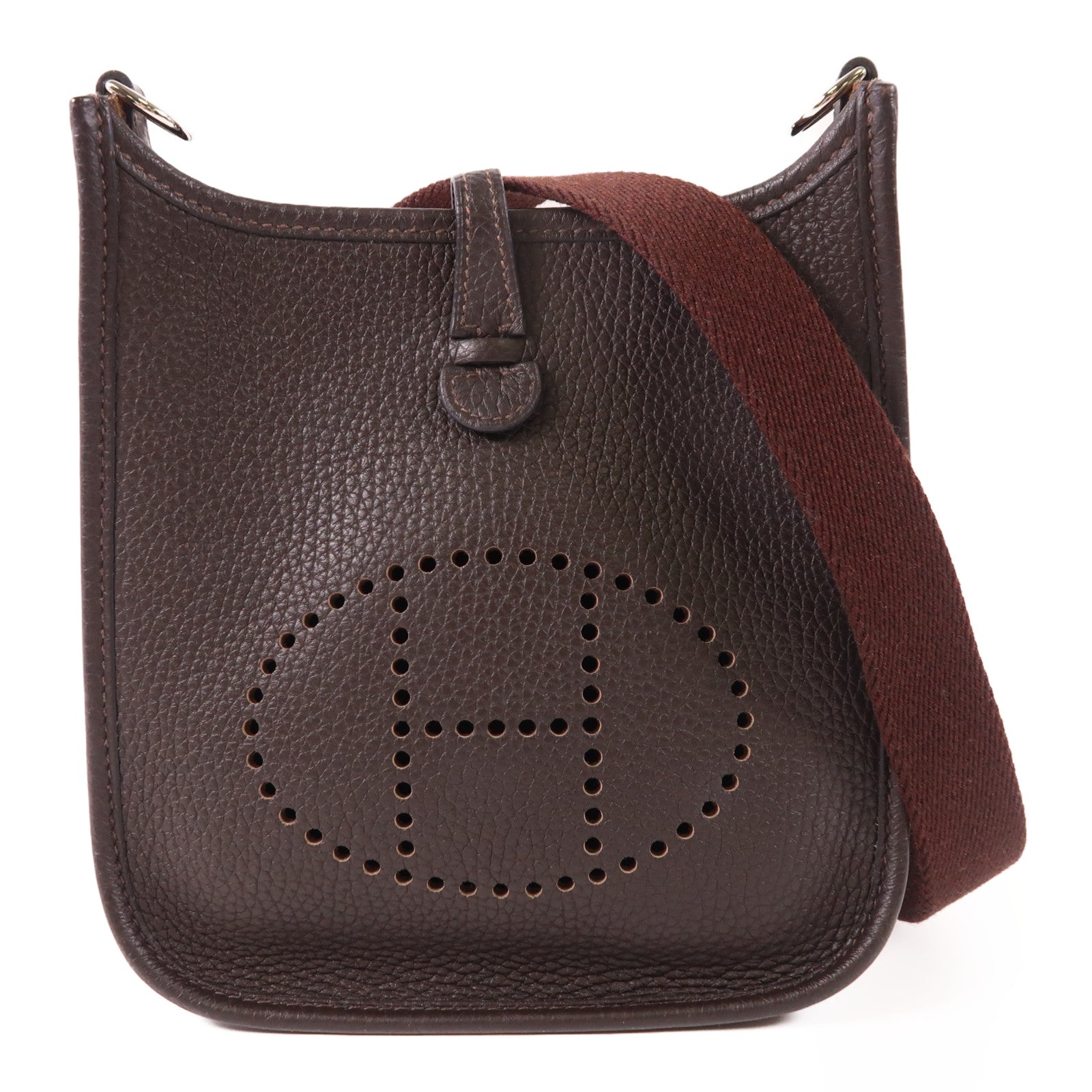 HERMES 【激減優惠】Clemence皮革Evelyne TPM銀扣肩背袋Ebene
