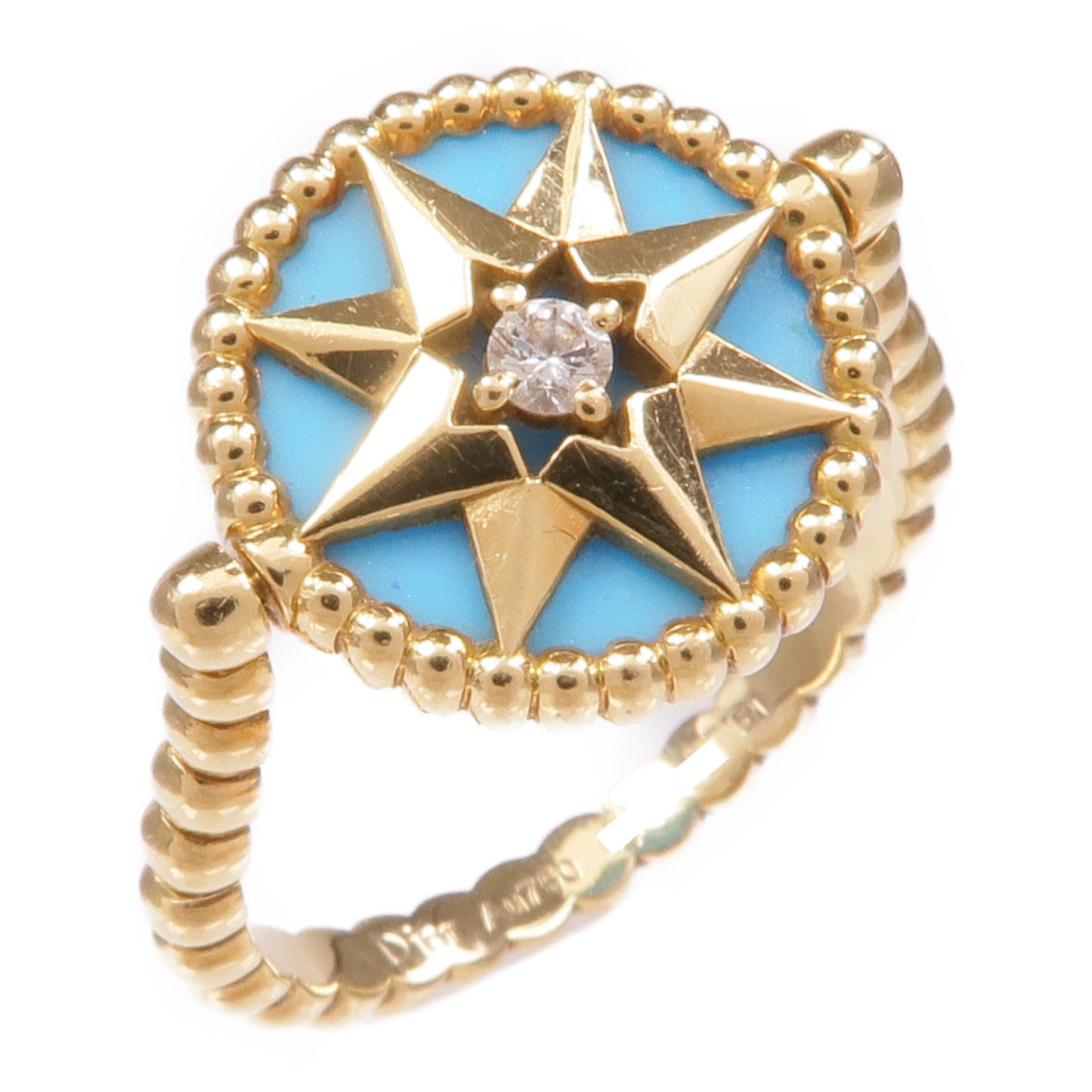 Dior 18K黃金Rose De Vents鑽石/綠松石戒指CD#51/US#6