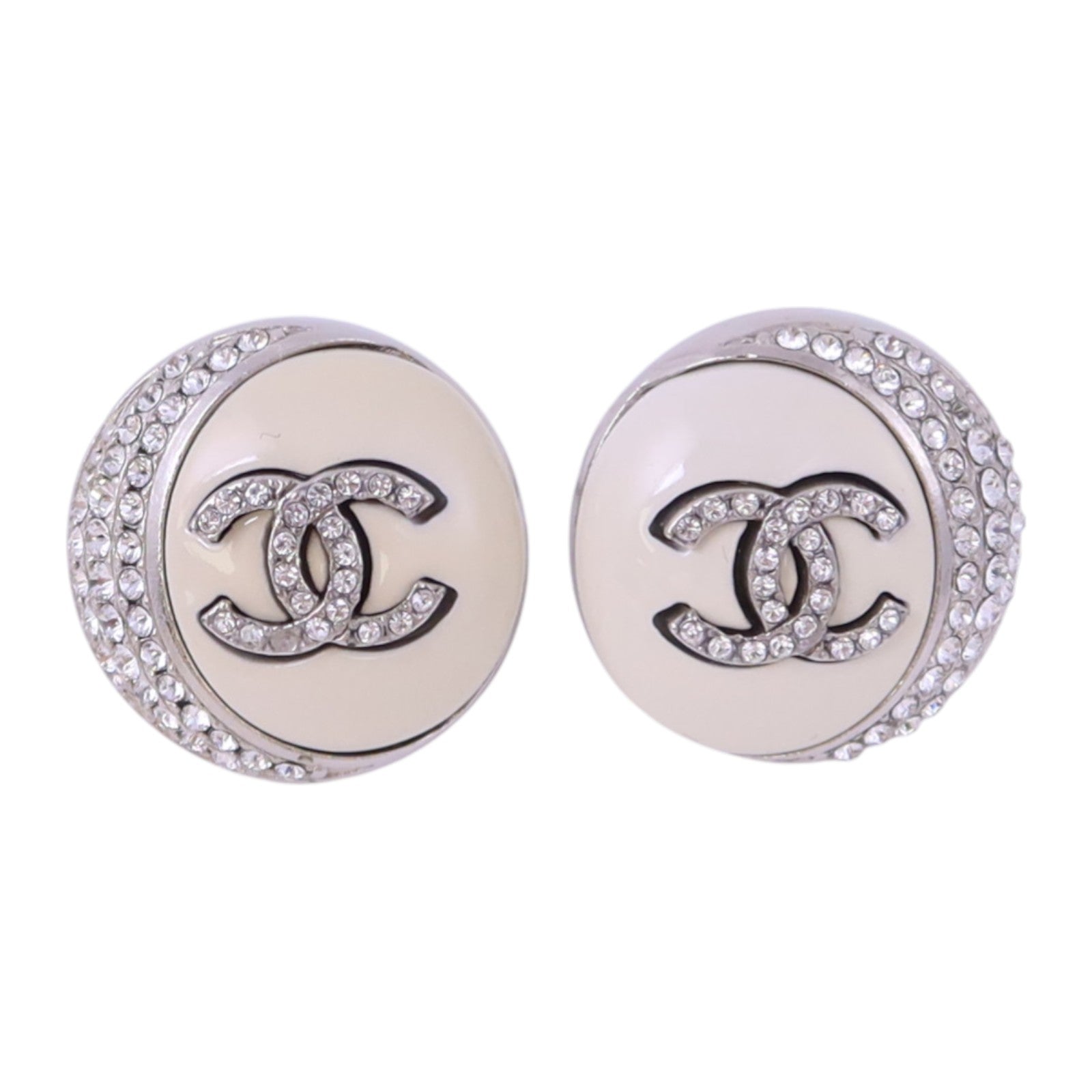 CHANEL 金屬/PVC/水鑽Earrings銀扣耳環