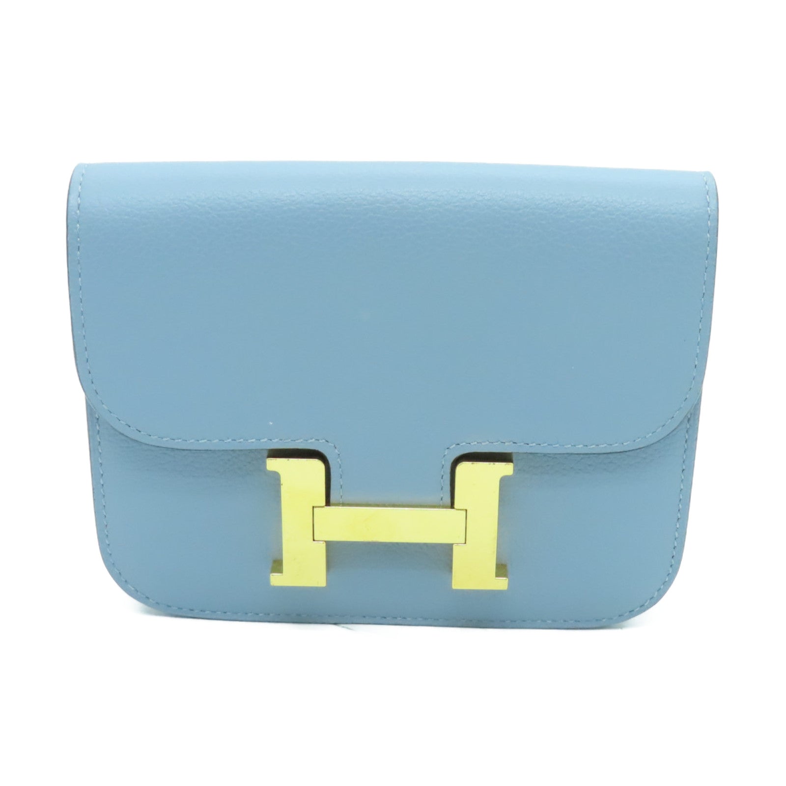 HERMES Clemence皮革Constance Slim金扣錢包淺藍色