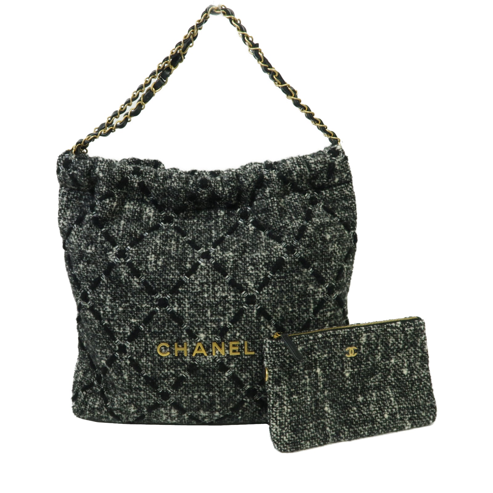 CHANEL 粗花呢Chanel 22金扣手挽袋黑色/白色