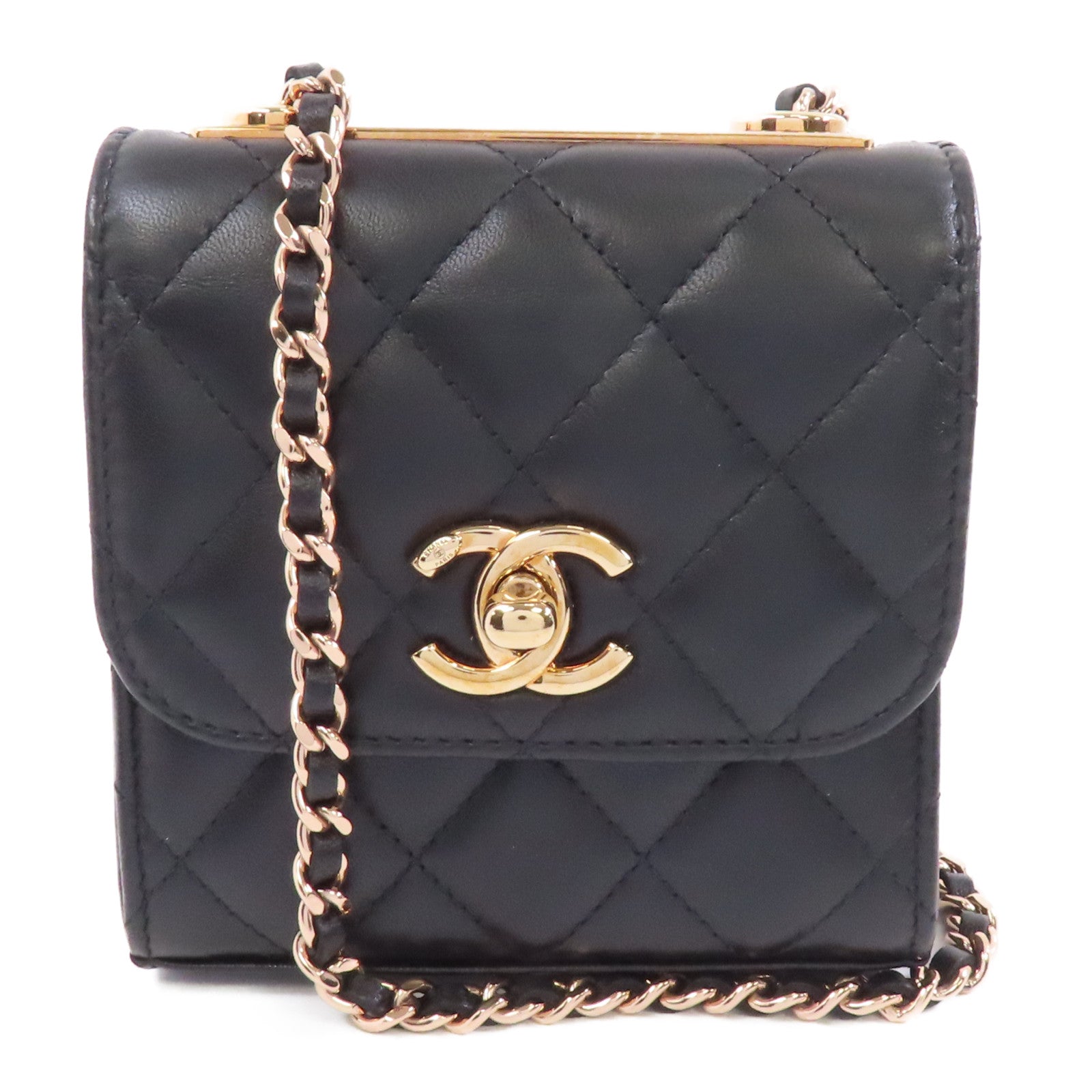 CHANEL 菱格羊皮皮革Trendy CC Mini Bag金扣鏈帶肩背袋黑色