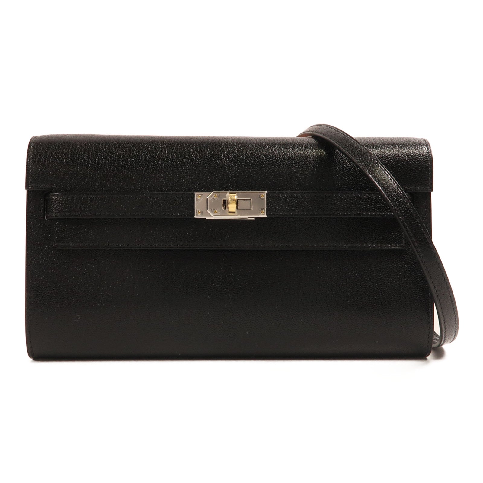HERMES 【激減優惠】Chevre皮革Kelly To Go銀扣肩背袋黑色